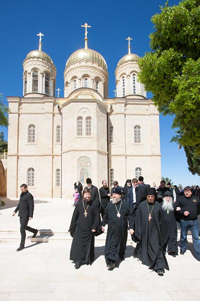 За богослужением молились: настоятельница Горненского монастыря игумения Георгия (Щукина) с насельницами обители, настоятельница Иверско-Серафимовского монастыря Алма-Аты игумения Любовь (Якушкина), секретарь Казахстанского Митрополичьего округа, Заслуженный деятель искусств России О.Н. Овчинников; сотрудники Русской Духовной миссии, члены паломнической группы Казахстанского Митрополичьего округа, паломники из России и стран СНГ.