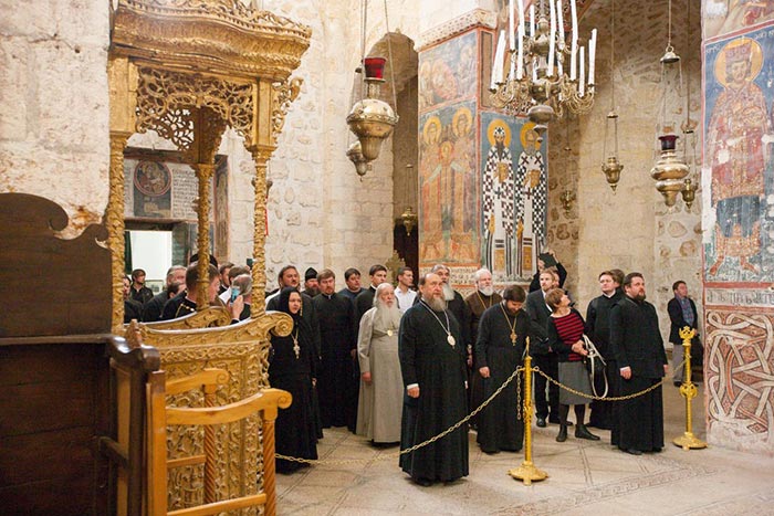 После Литургии в Горненском монастыре казахстанские паломники посетили одну из знаменитейших монашеских обителей Святой Земли – монастырь Креста, основанный на месте произрастания Крестного древа. В монастыре Креста жил грузинский государственный деятель и поэт XII века, автор хрестоматийной эпической поэмы «Витязь в тигровой шкуре». Согласно преданиям в этой же обители он нашел место своего упокоения.