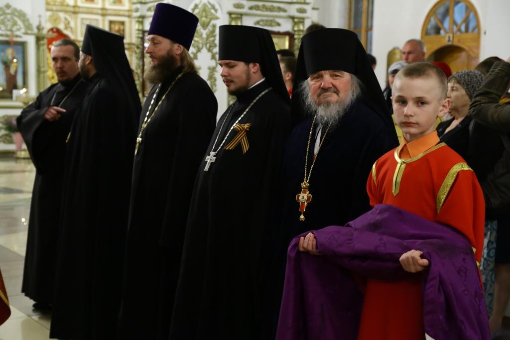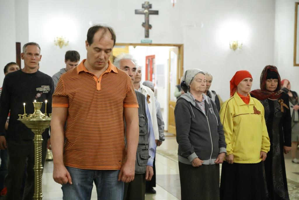 По окончании Литургии состоялся благодарственный молебен о даровании Победы в Великой Отечественной войне и особое поминовение усопших. Епископ Амфилохий и духовенство молились об упокоении «всех вождей и воинов, на поле брани жизнь свою положивших, от ран и голода скончавшихся, в пленении и горьких работах невинно умученных и убиенных».