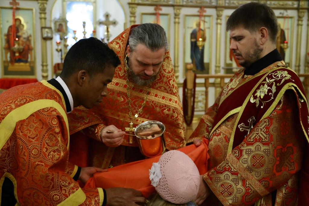 Песнопения Литургии исполнял хор собора под управлением В. Фёдоровой.