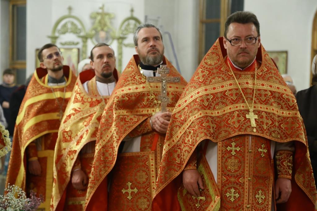 Владыке Амфилохию сослужили: благочинный Усть-Каменогорского церковного округа иерей Алексий Анищенко, и.о.секретаря епархии иерей Евгений Яганов, руководитель Епархиального молодёжного отдела иерей Вячеслав Гутов, руководители отделов и комиссий в священном сане, клирики храмов Усть-Каменогорска.
