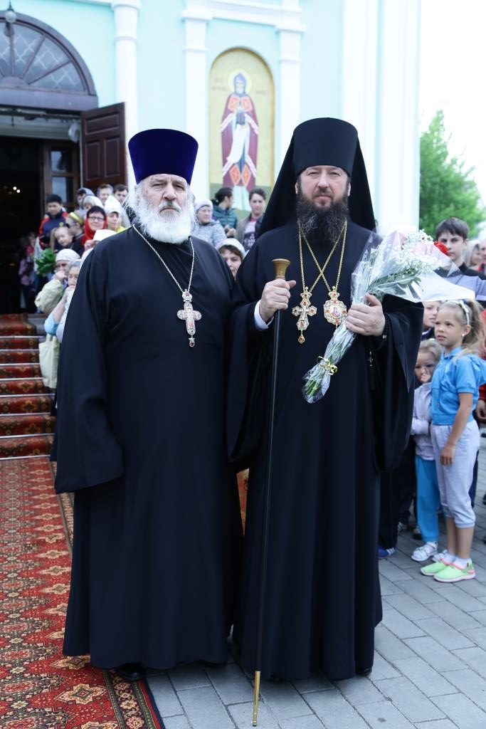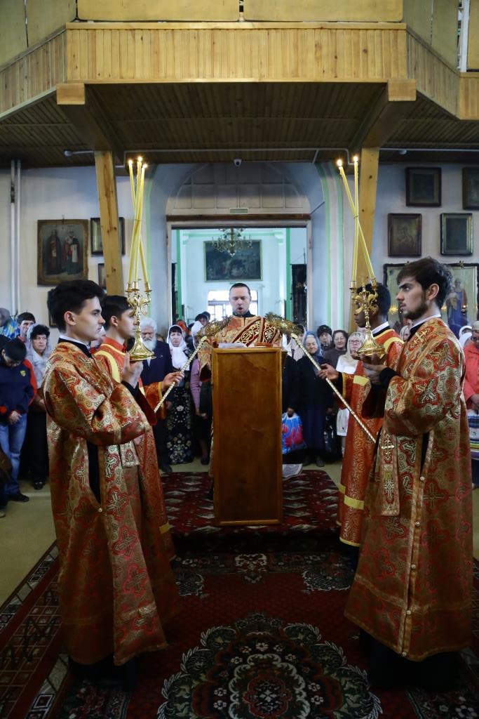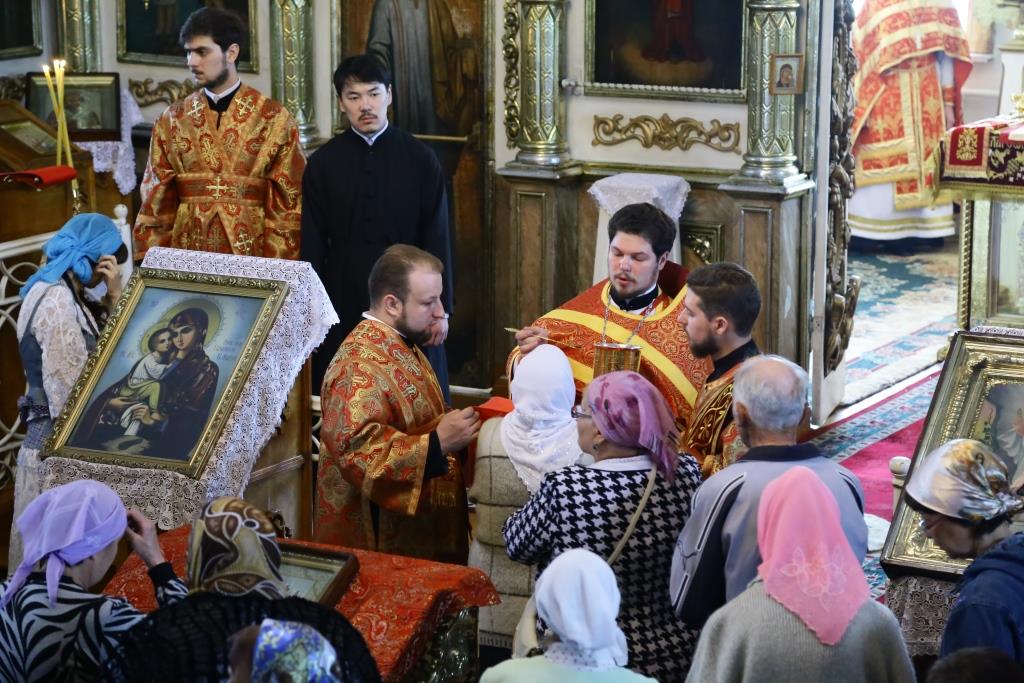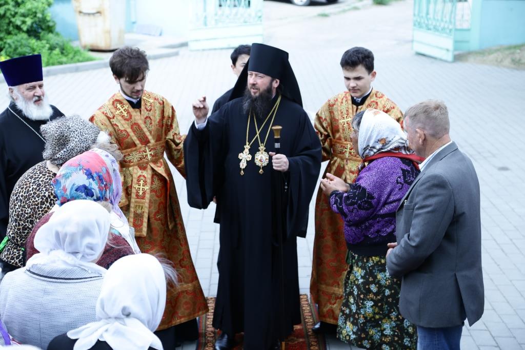 Его Преосвященству сослужили: секретарь Управляющего епархией иеромонах Силуан (Магилёв), председатель Епархиальной комиссии по делам молодёжи иерей Вячеслав Гутов, духовенство Семипалатинского благочиния; клирики Андреевского кафедрального собора протодиакон Андрей Дудник, иеродиакон Мефодий (Шевчук), клирик собора диакон Николай Белоконь.
