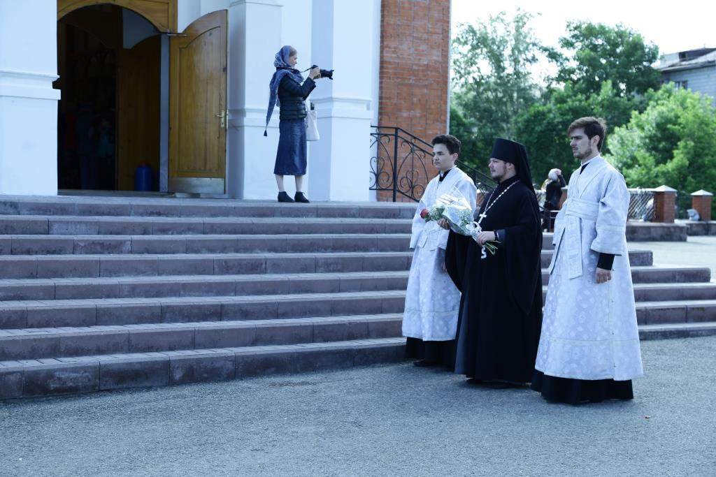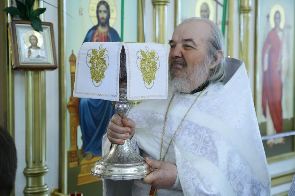 Его Преосвященству сослужили: духовник епархии архимандрит Спиридон (Теплухин), секретарь Управляющего епархией иеромонах Силуан (Магилёв), клирик храма иерей Алексий Клепиков, заведующий канцелярией Усть-Каменогорского епархиального управления иерей Константин Дьяков; протодиакон Георгий Засыпкин, клирики Свято-Андреевского собора протодиакон Андрей Дудник, иеродиакон Мефодий (Шевчук), диакон Георгий Сухобокий.