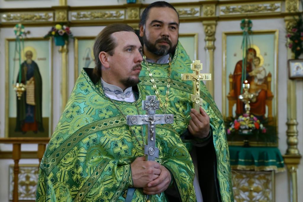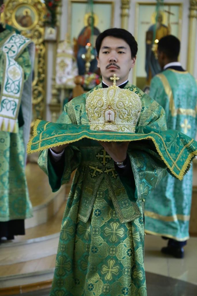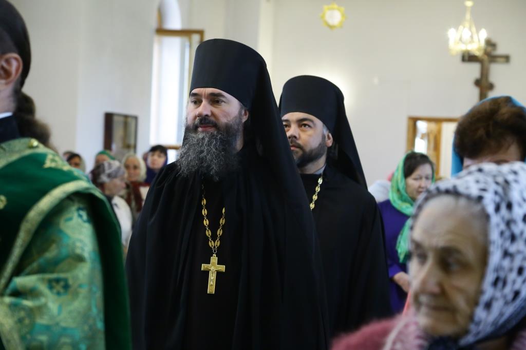 Его Преосвященству сослужили: духовник Усть-Каменогорской епархии архимандрит Спиридон (Теплухин), секретарь Управляющего епархией иеромонах Силуан (Магилёв), ключарь Андреевского собора иеромонах Никодим (Авдеев), иеромонах Севастиан (Андрющенко); протодиакон Георгий Засыпкин, протодиакон Андрей Дудник, иеродиакон Мефодий (Шевчук), диакон Георгий Сухобокий.