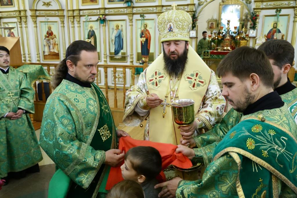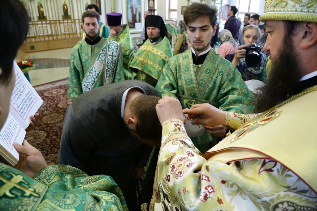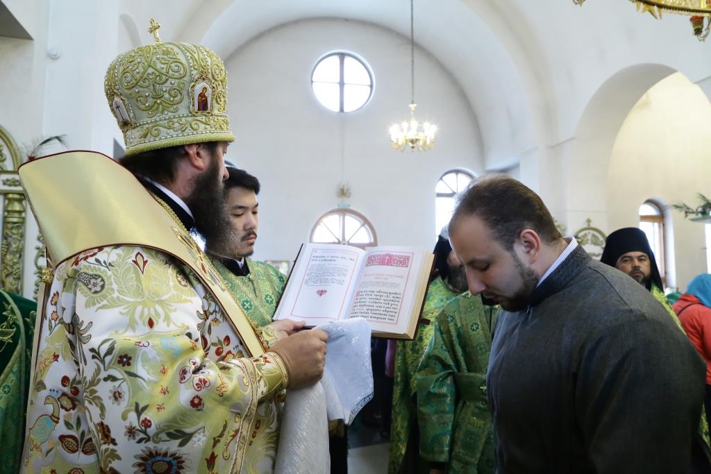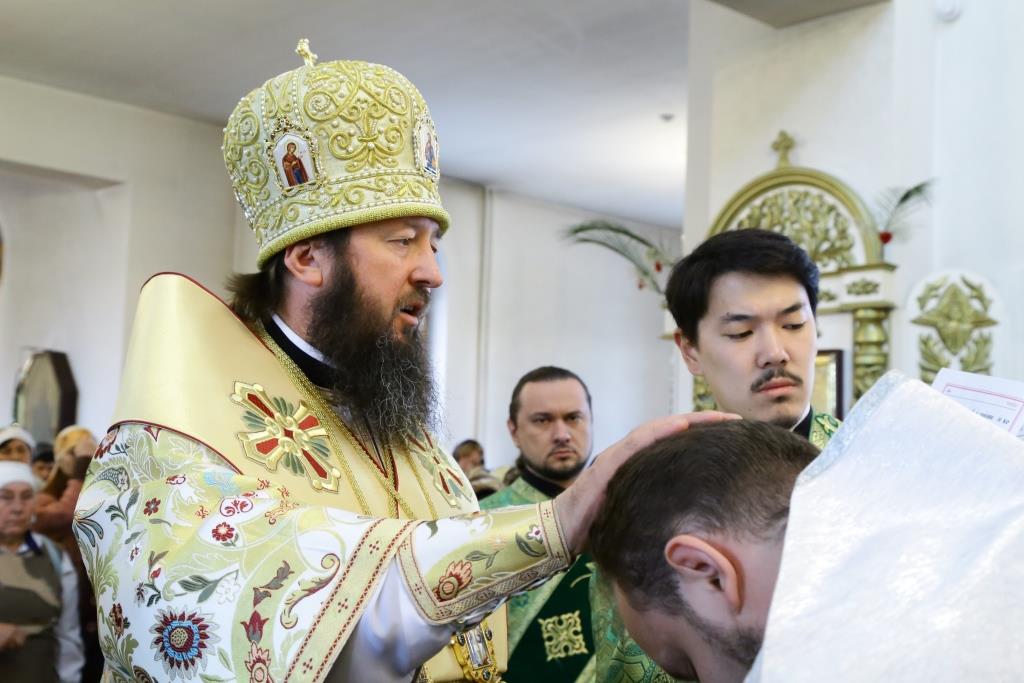 Перед началом Божественной литургии Преосвященный владыка совершил хиротесию катехизатора Андреевского собора Алексия Горбунова. Посвящение в низшую степень клира — совершается через возложение рук епископа и крестообразное пострижение, символизирующее посвящение и всецелое пожертвование на служение Богу.