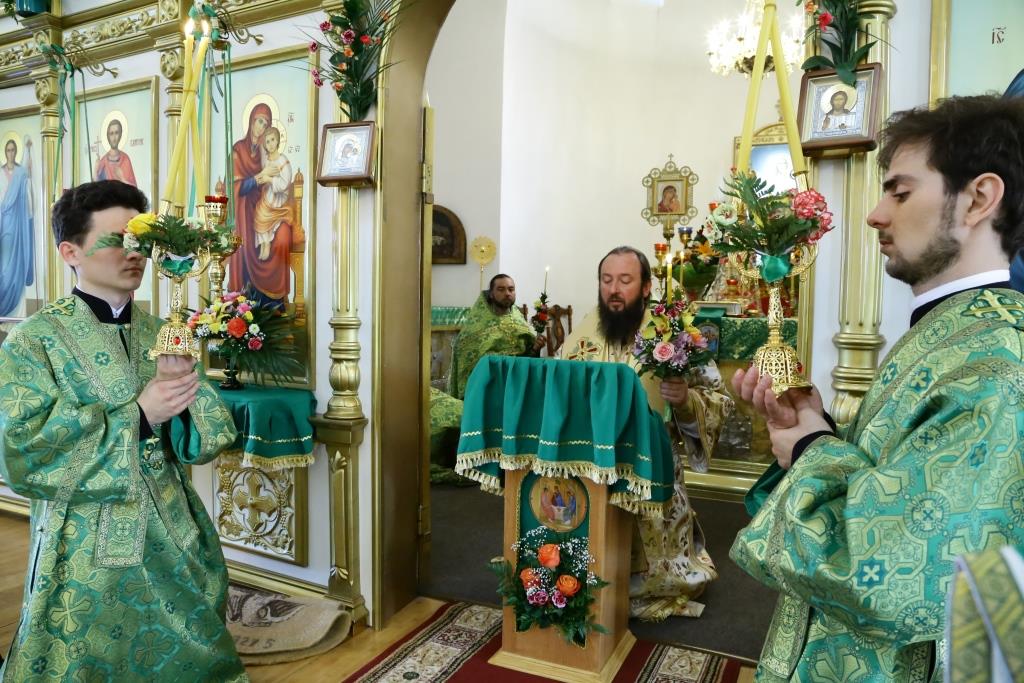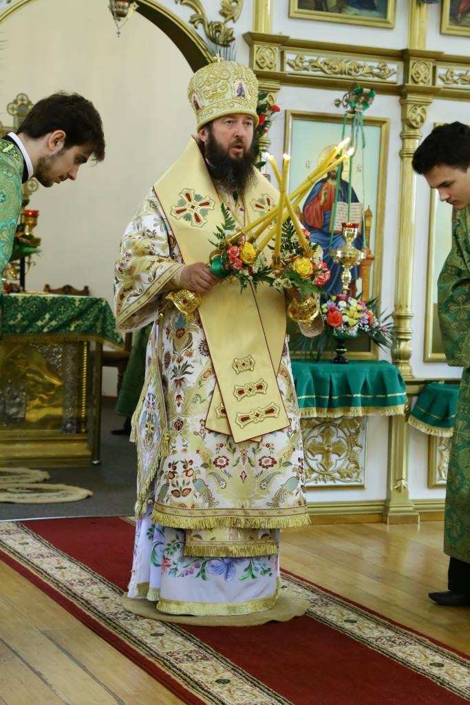 По окончании Литургии епископ Амфилохий совершил Великую вечерню праздника Пятидесятницы с чтением коленопреклонных молитв.