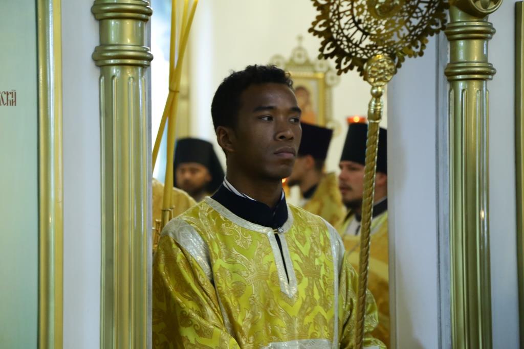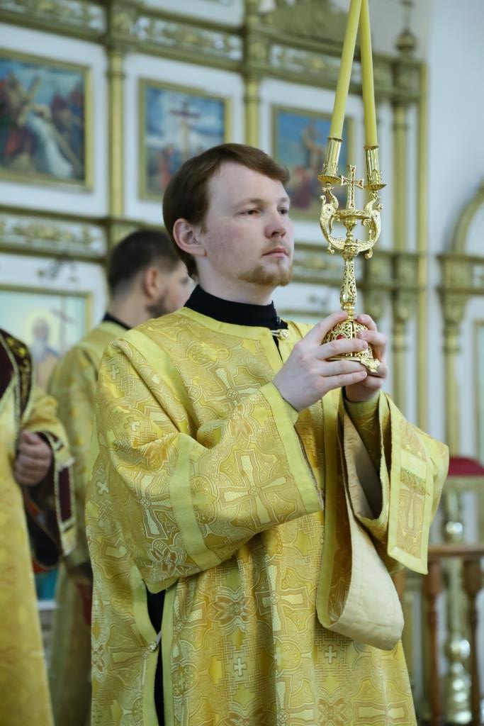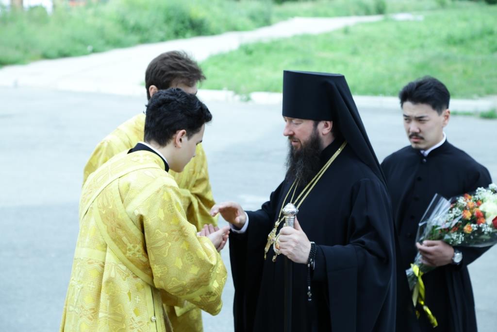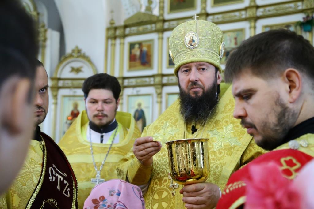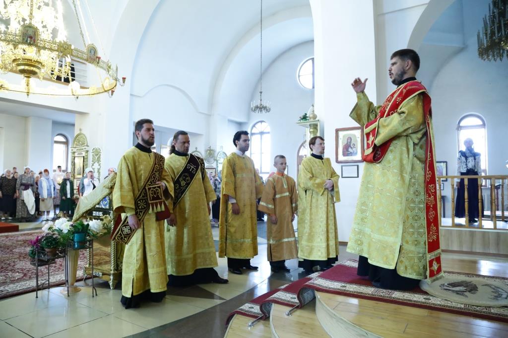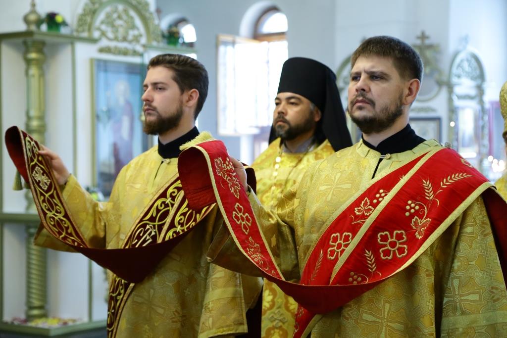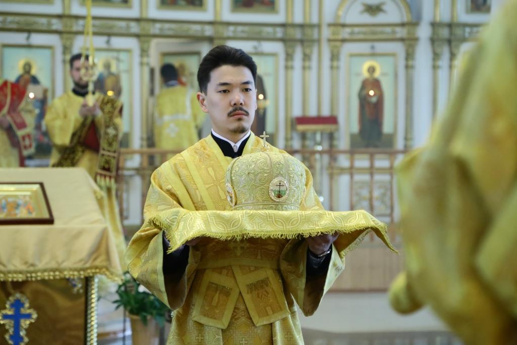 Его Преосвященству сослужили: духовник Усть-Каменогорской епархии архимандрит Спиридон (Теплухин), секретарь Управляющего епархией иеромонах Силуан (Магилёв), клирик собора иеромонах Севастиан (Андрющенко), заведующий канцелярией Усть-Каменогорского епархиального управления иерей Константин Дьяков; клирики храма протодиакон Андрей Дудник, иеродиакон Мефодий (Шевчук), диакон Георгий Сухобокий.