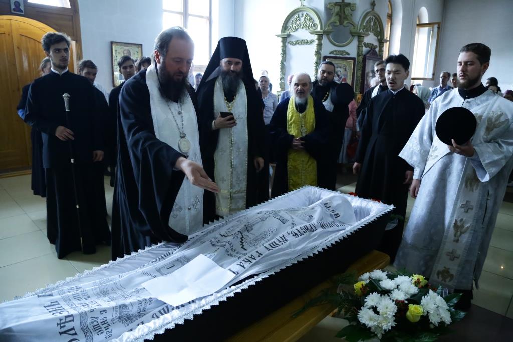 После отпевания новопреставленного монаха Амвросия, Преосвященнейший владыка епископ прочитал над усопшим разрешительную молитву.