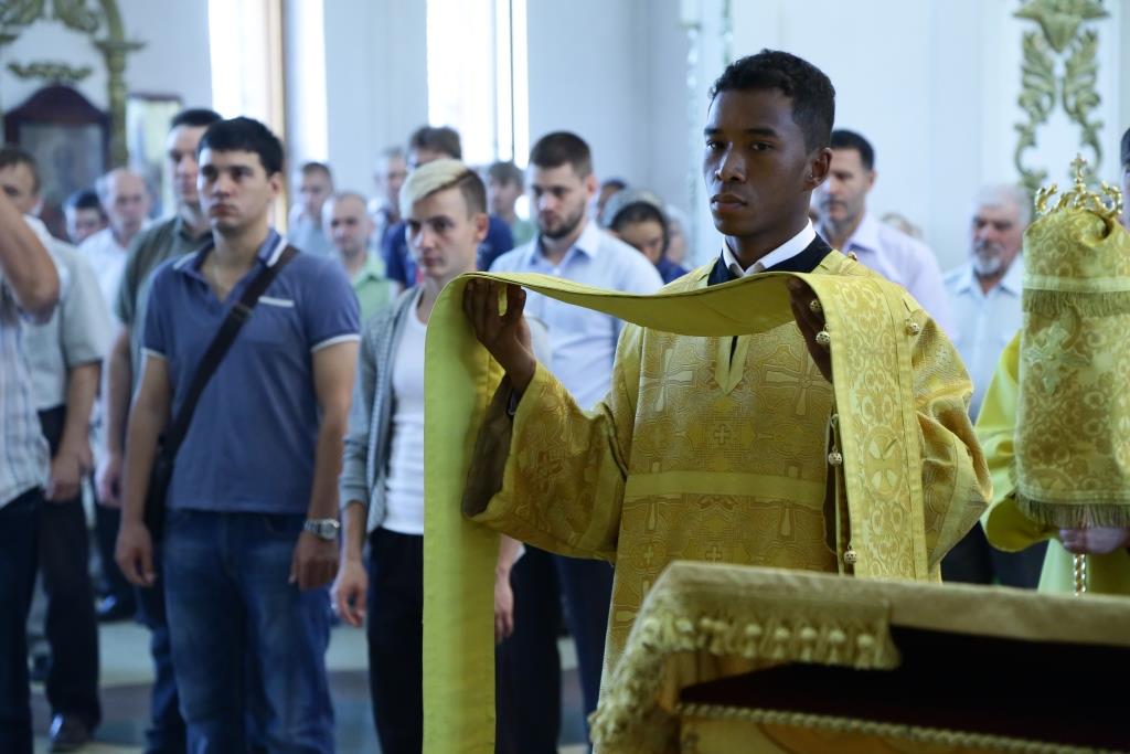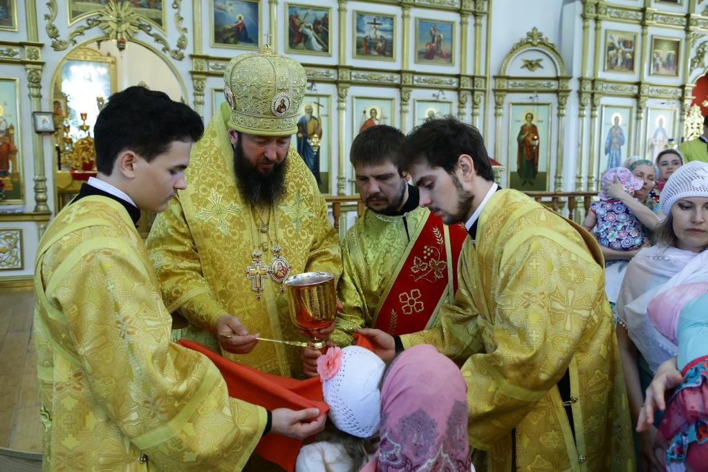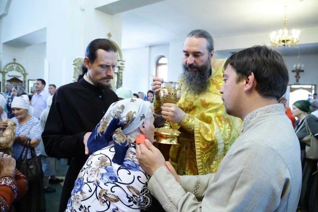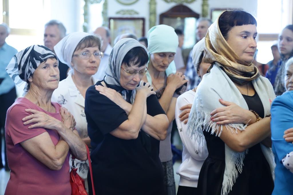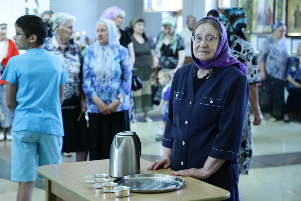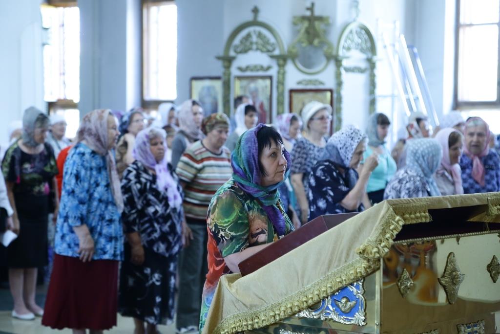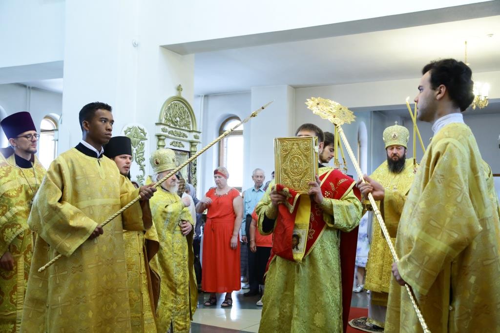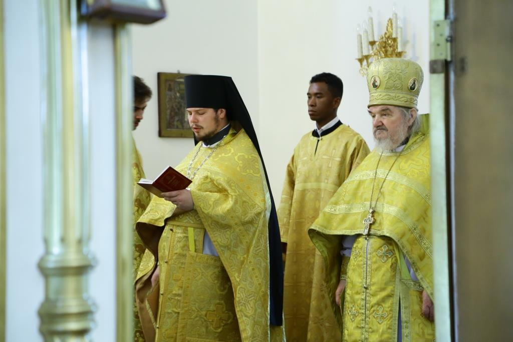 Его Преосвященству сослужили: духовник Усть-Каменогорской епархии архимандрит Спиридон (Теплухин), ключарь собора иеромонах Никодим (Авдеев), иеромонах Силуан Магилев), иерей Алексий Клепиков, заведующий канцелярией Усть-Каменогорского епархиального управления иерей Константин Дьяков.