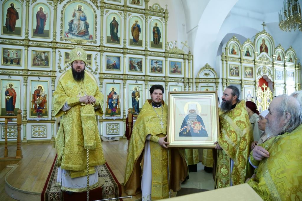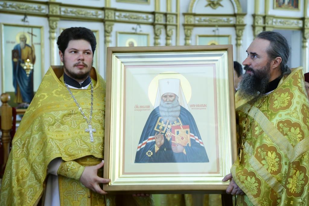 В завершение в дар возрождающемуся Свято-Троицкому монастырскому собору епископ Амфилохий передал икону святителя Николая, митрополита Алма-Атинского и Казахстанского, исповедника с частицей его святых мощей.