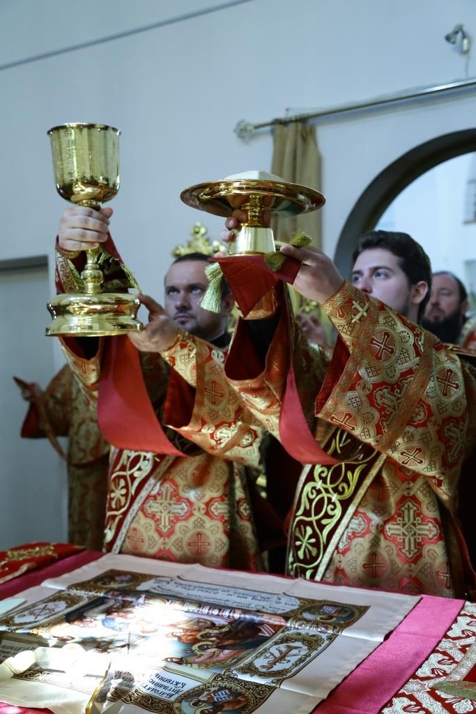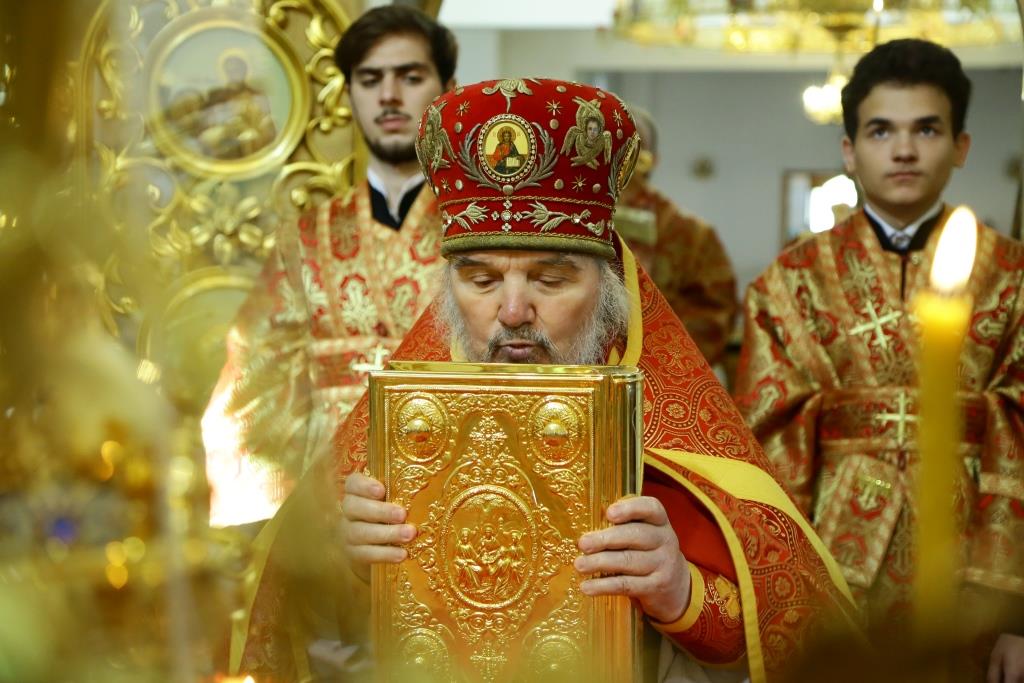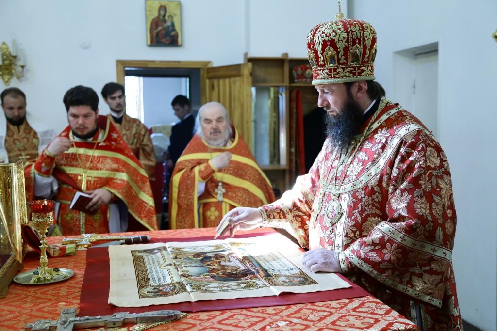 В завершение Литургии было соврешено славление святым Царственным страстотерпцам, после чего Преосвященный Амфилохий обратился к молящимся со словами поучения: