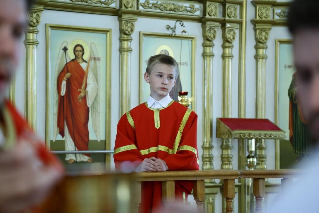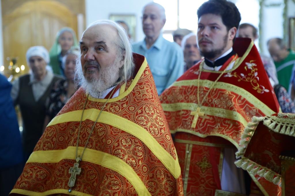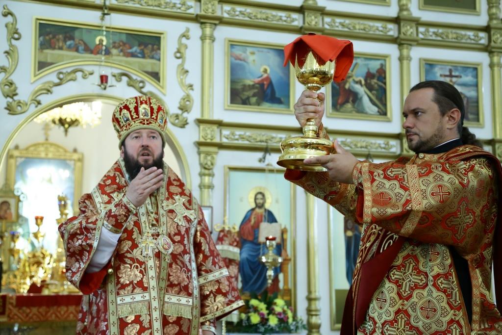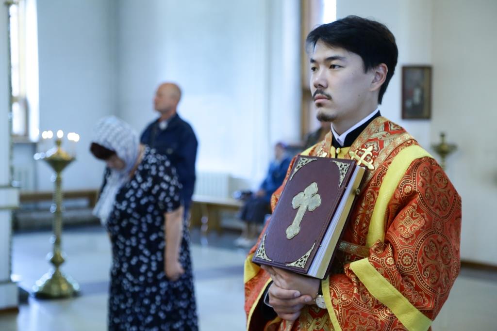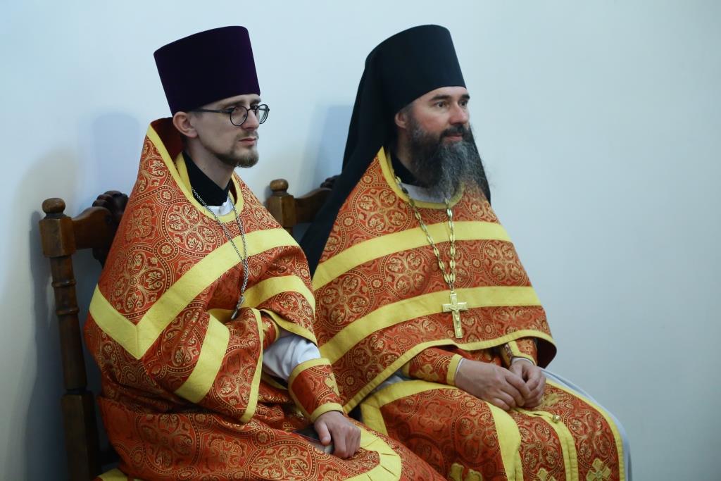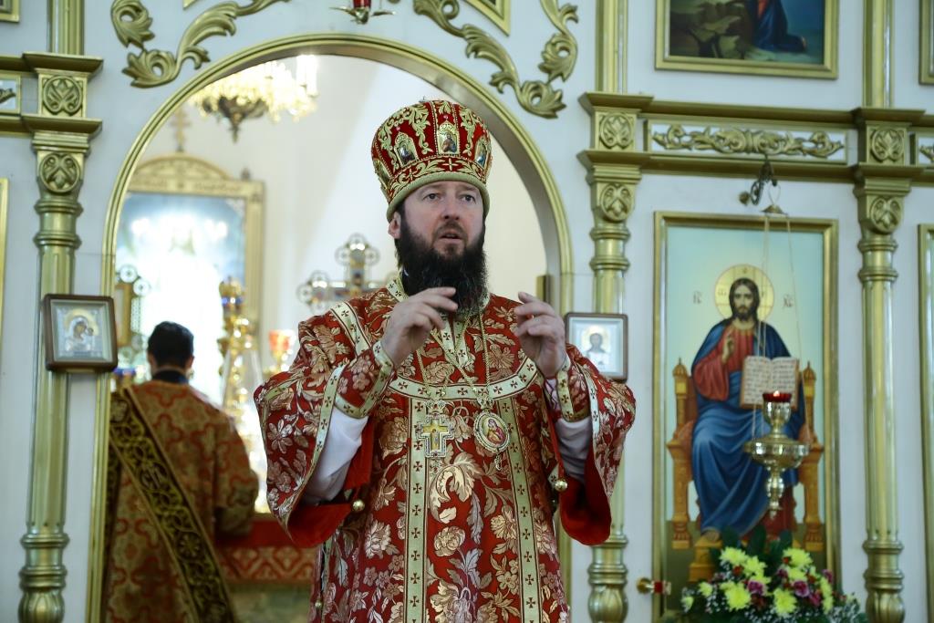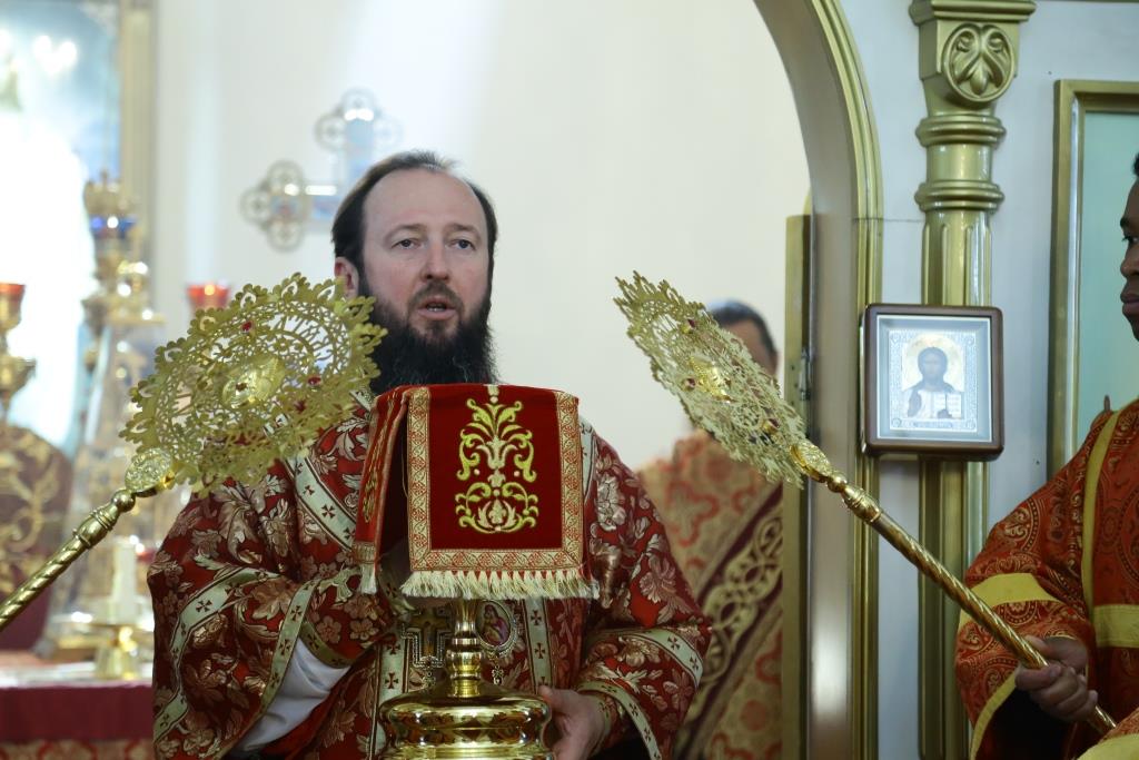 Его Преосвященству сослужили: ключарь собора иеромонах Никодим (Авдеев), секретарь Управляющего епархией иеромонах Силуан (Магилёв), заведующий канцелярией Усть-Каменогорского епархиального управления иерей Константин Дьяков; протодиакон Андрей Дудник, иеродиакон Мефодий (Шевчук), диакон Георгий Сухобокий.