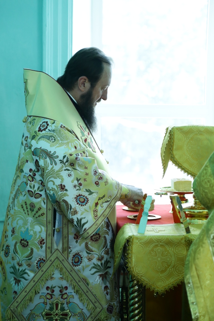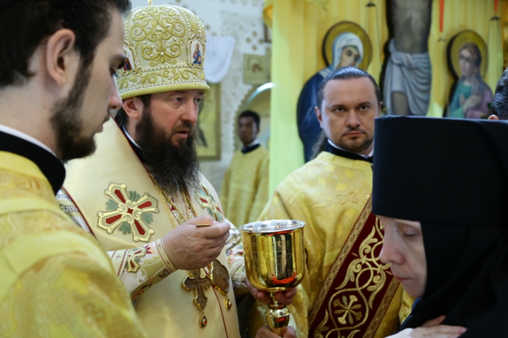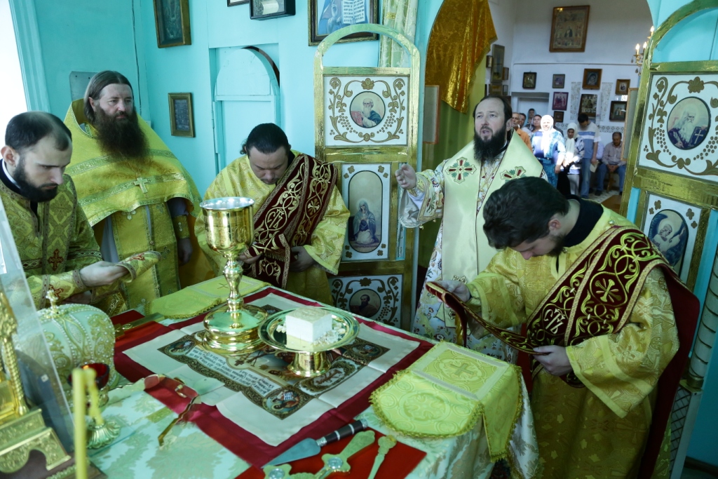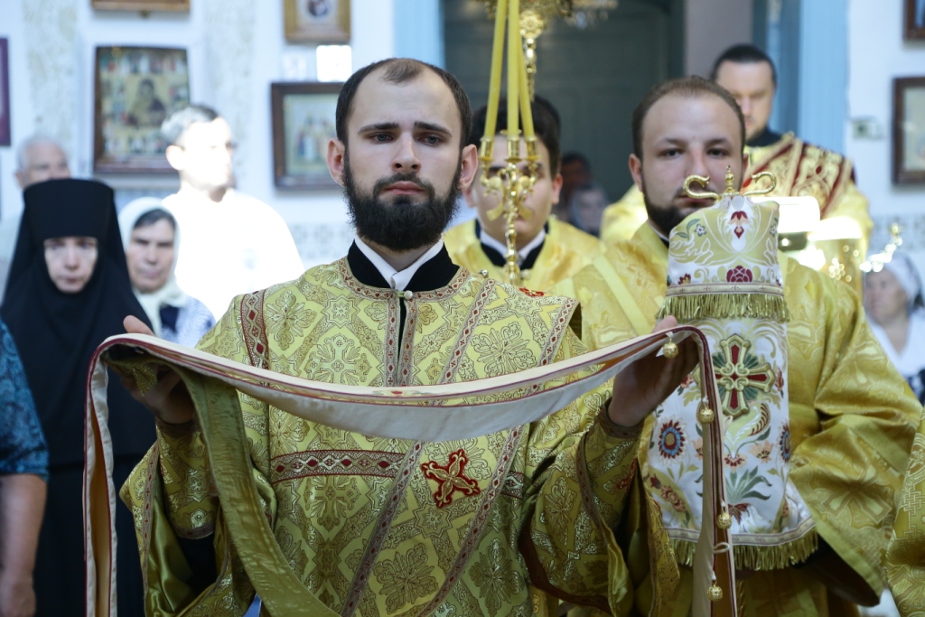 Его Преосвященству сослужили: духовник монастыря игумен Аникита (Макаров), секретарь Управляющего епархией иеромонах Силуан (Магилёв), председатель Епархиальной комиссии по делам молодёжи иерей Вячеслав Гутов, настоятель Казанского храм г. Курчатов иерей Димитрий Нектеров; диаконский чин возглавил протодиакон Андрей Дудник.