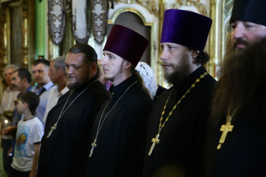Владыке Амфилохию сослужили: благочинный Семипалатинского церковного округа протоиерей Феодор Проскурин, клирик храма протоиерей Михаил Безродний, духовник Знаменско-Абалацкого женского монастыря игумен Аникита (Макаров), настоятель Иоанна-Богословского храма поселка Жезкент протоиерей Роман Бобровский, секретарь Управляющего епархией иеромонах Силуан (Магилёв), иерей Сергий Жарич, председатель Епархиальной комиссии по делам молодёжи иерей Вячеслав Гутов, настоятель Михаило-Архангельского храма пос. Шульбинск ВКО иерей Антоний Плотников; протодиакон Андрей Дудник, иеродиакон Мефодий (Шевчук), диакон Николай Белоконь, иеродиакон Маниул (Чабанов).