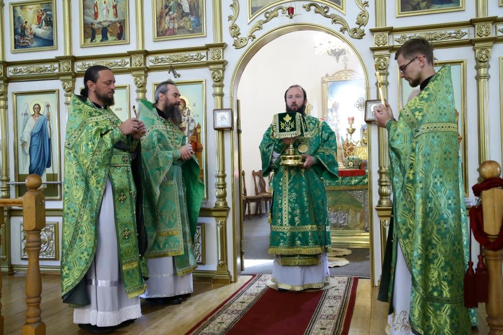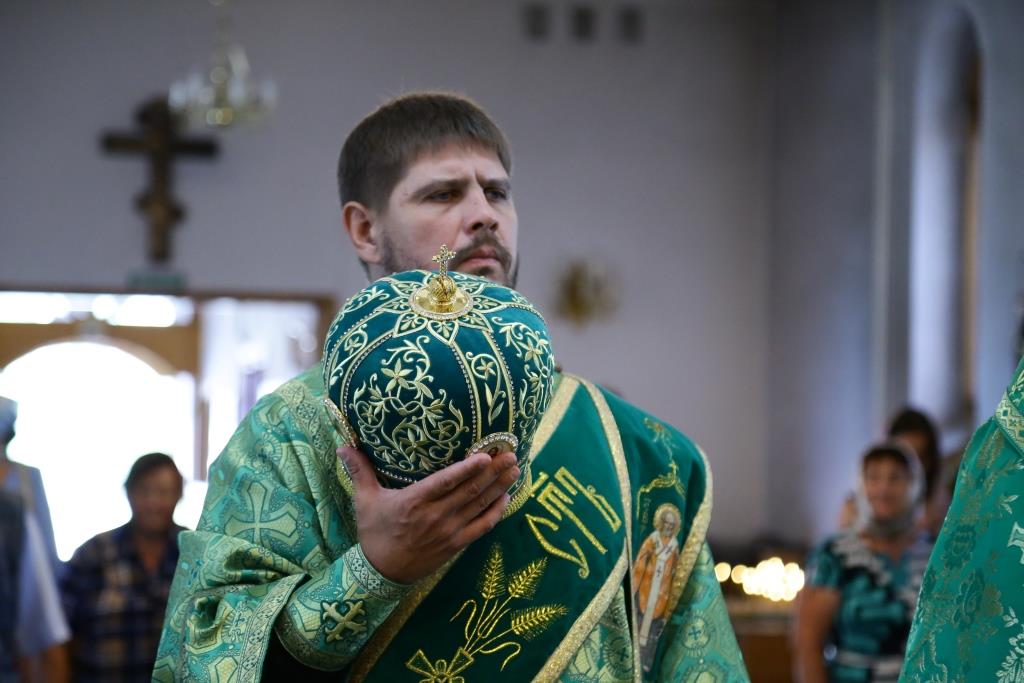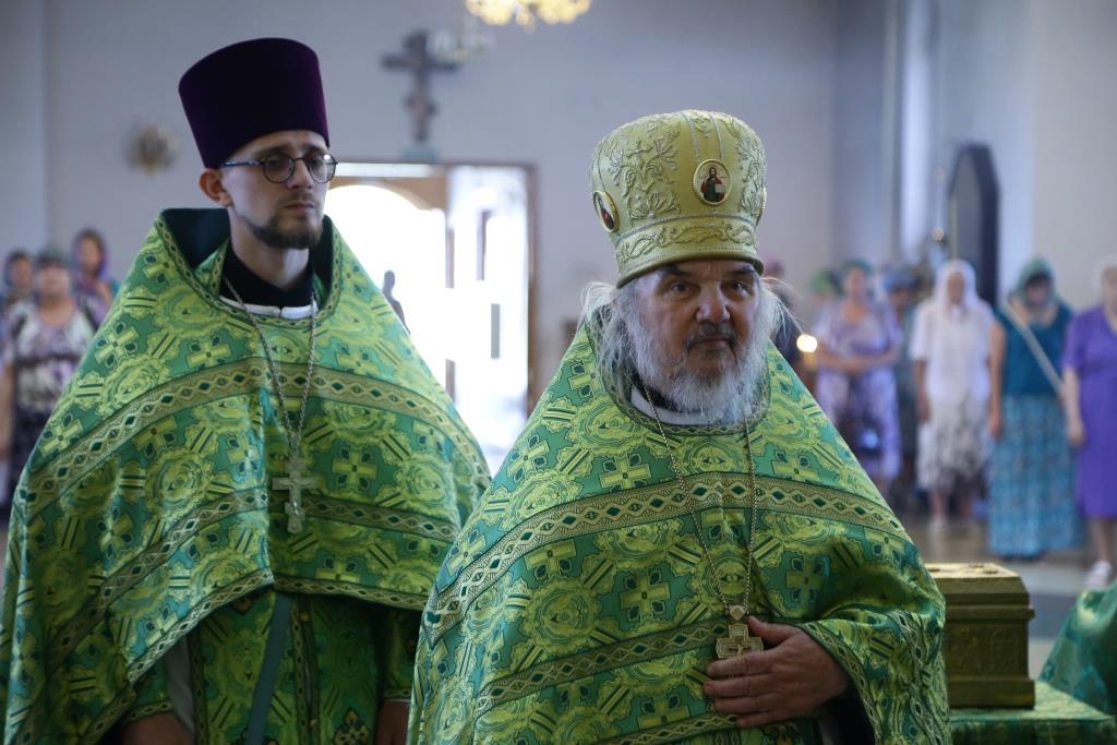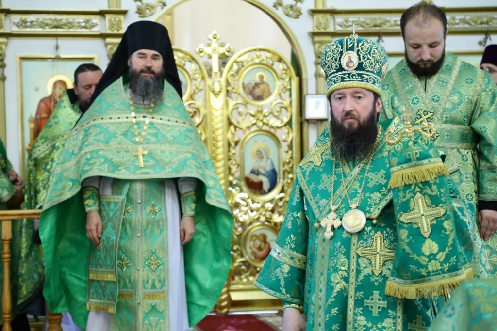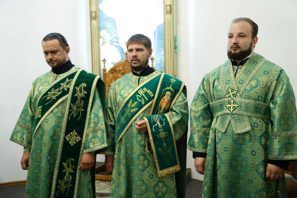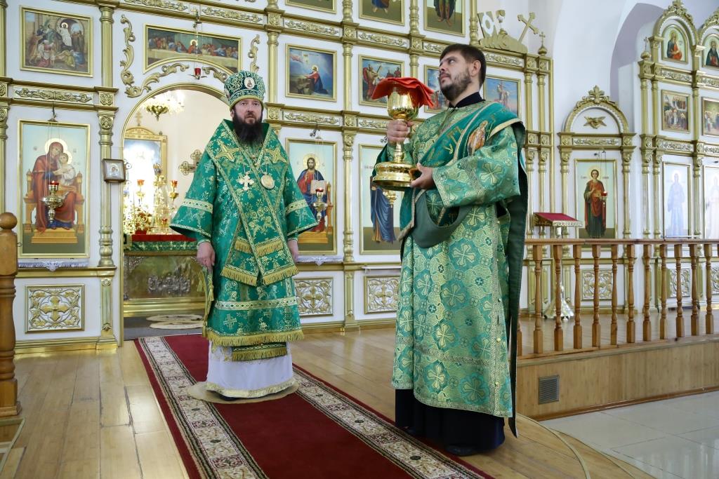 Архипастырю сослужили: духовник епархии архимандрит Спиридон (Теплухин), ключарь кафедрального собора иеромонах Никодим (Авдеев), заведующий канцелярией епархии иерей Константин Дьяков, клирик Свято-Покровского храма города Усть-Каменогорска иерей Игорь Шагидевич. Диаконский чин возглавил протодиакон Георгий Засыпкин.