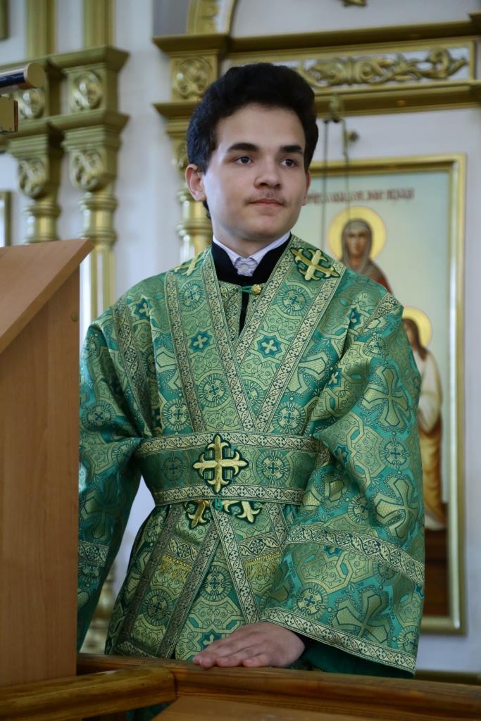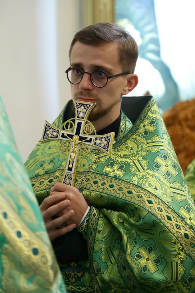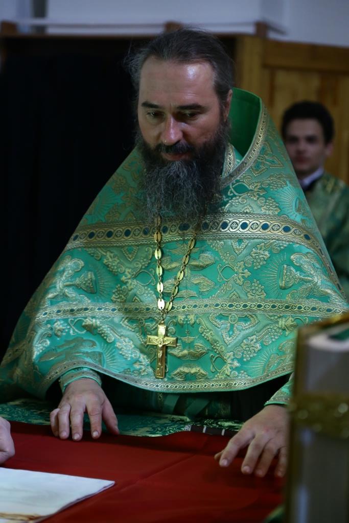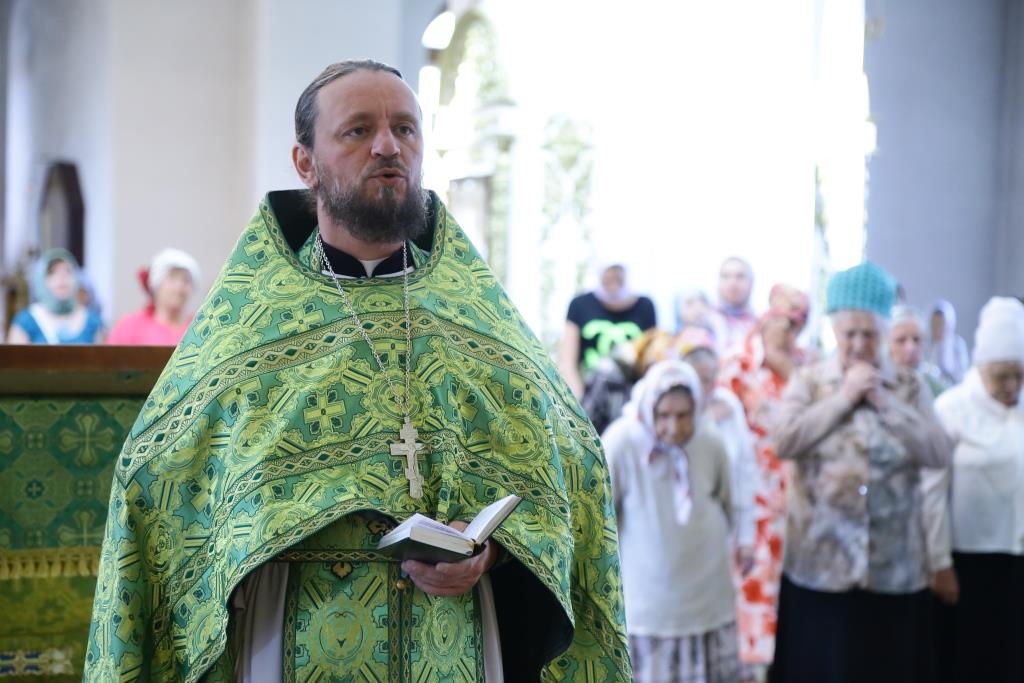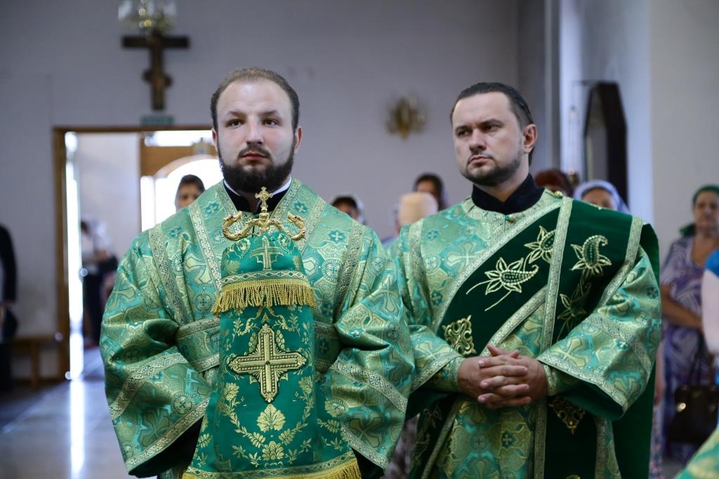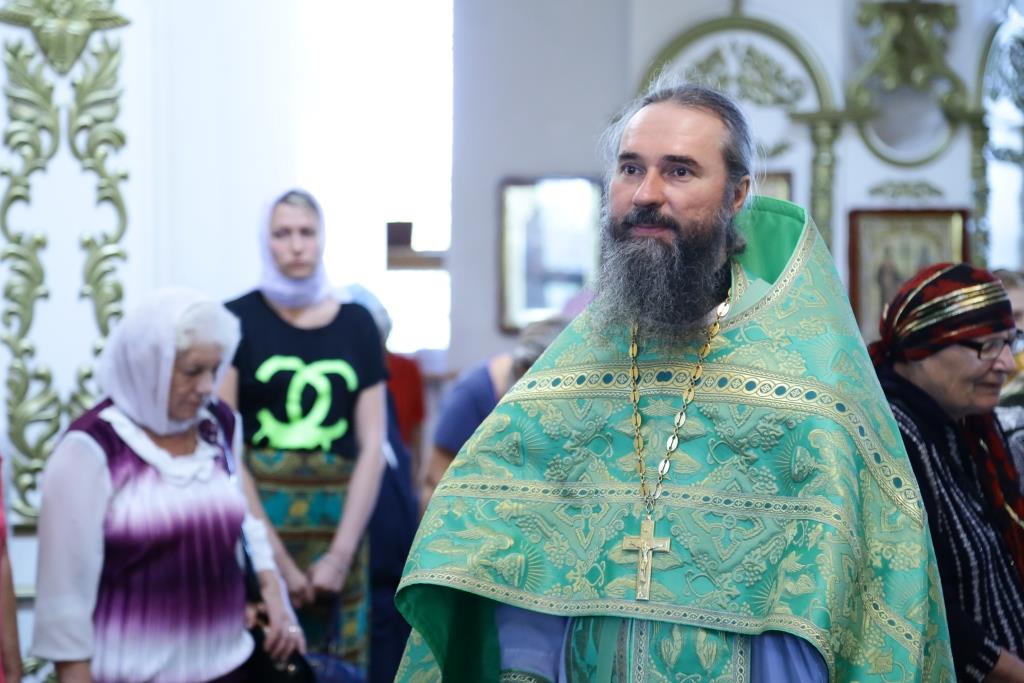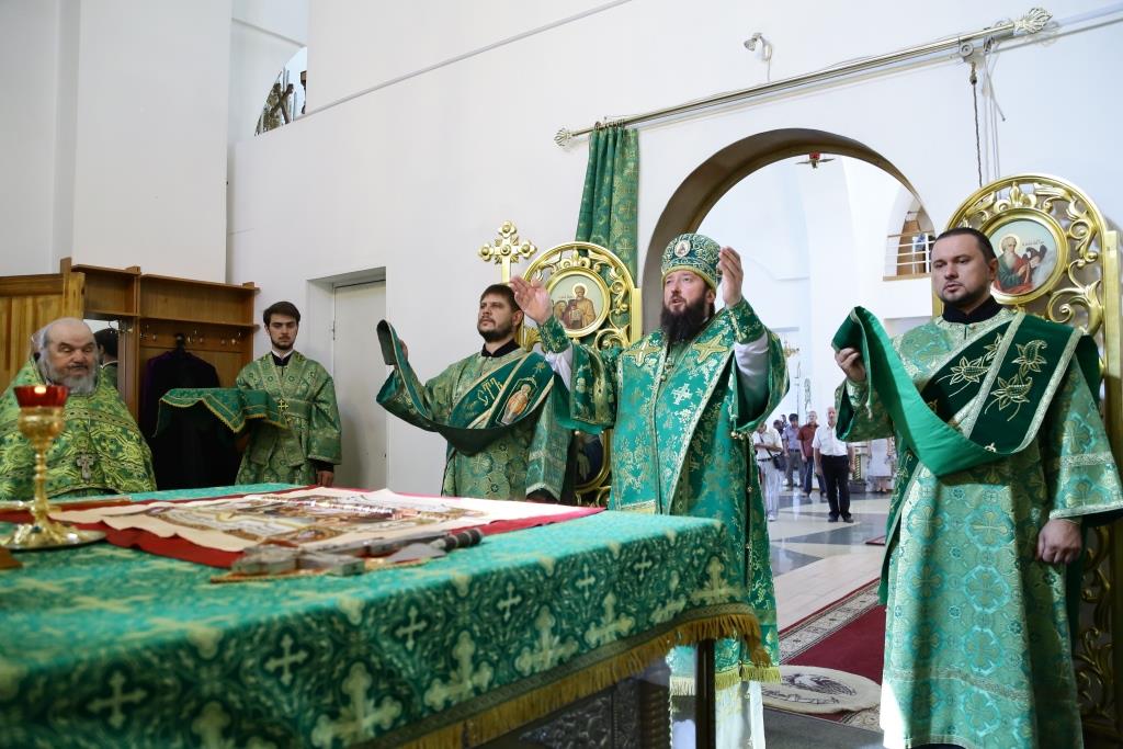 Архипастырю сослужили: духовник епархии архимандрит Спиридон (Теплухин), ключарь кафедрального собора иеромонах Никодим (Авдеев), заведующий канцелярией епархии иерей Константин Дьяков, клирик Свято-Покровского храма города Усть-Каменогорска иерей Игорь Шагидевич. Диаконский чин возглавил протодиакон Георгий Засыпкин.