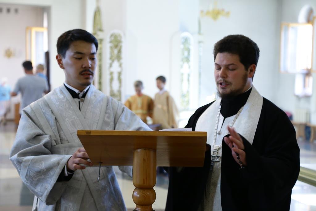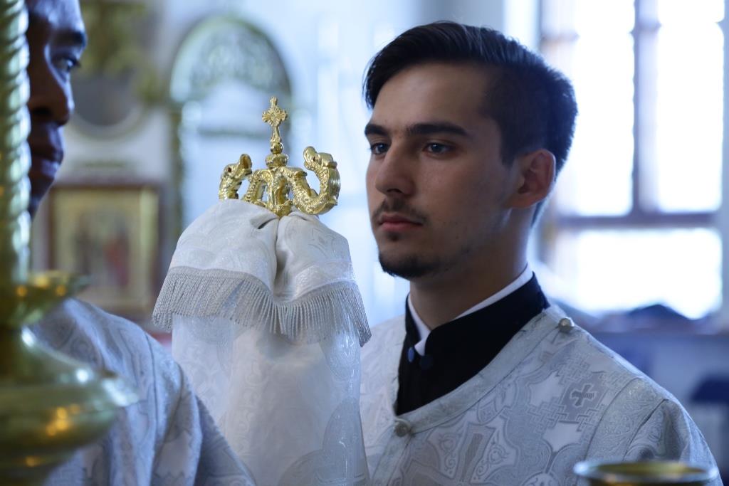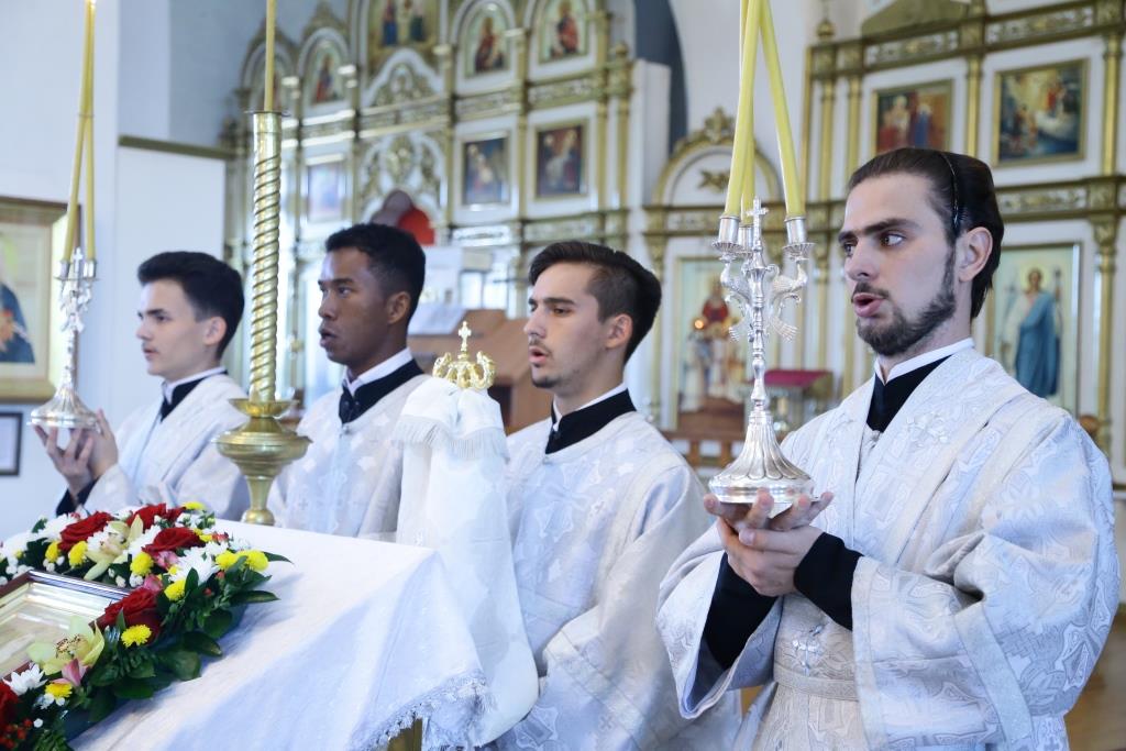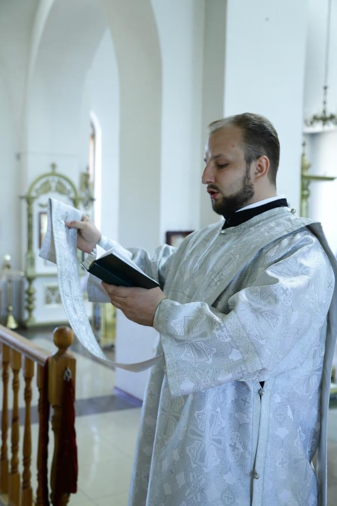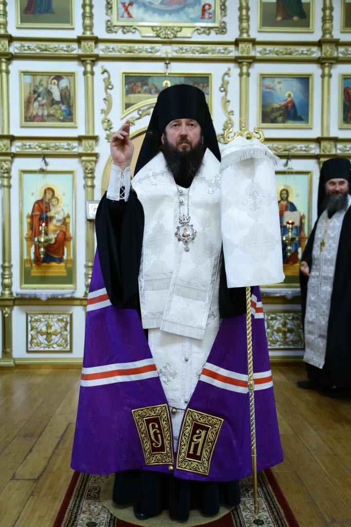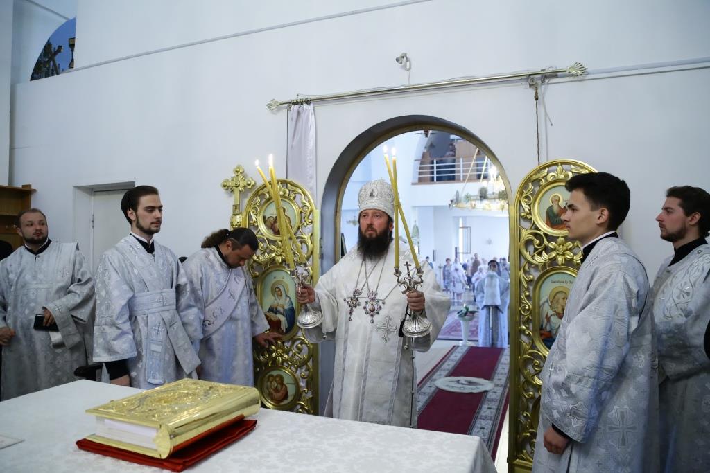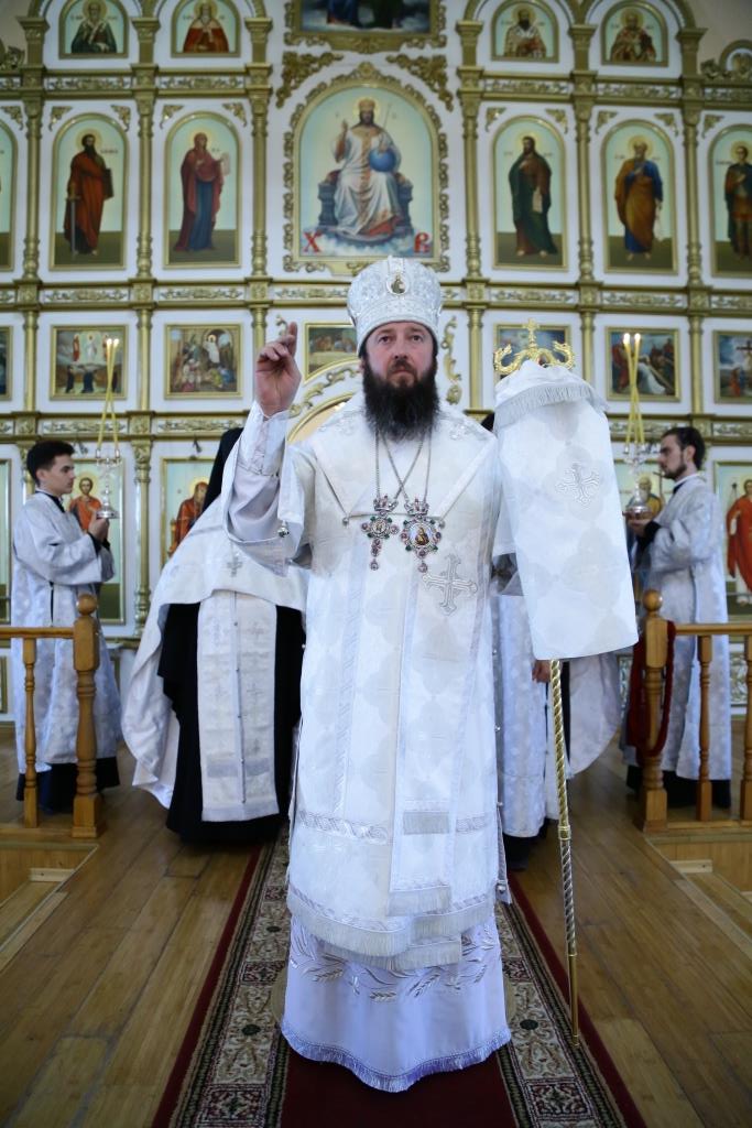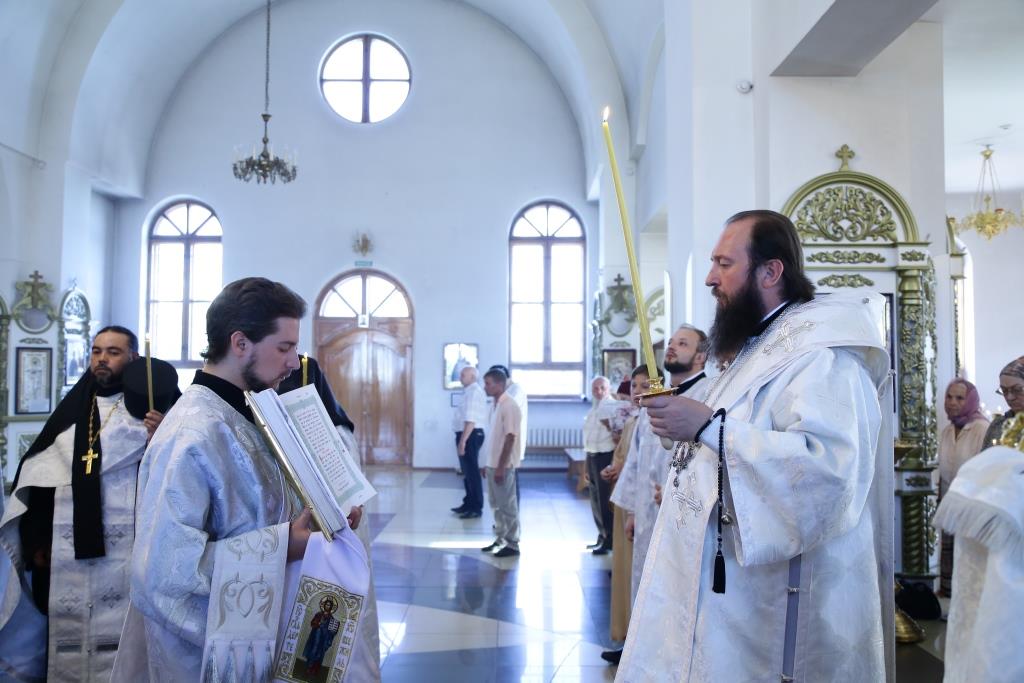 Его Преосвященству сослужили клирики собора.