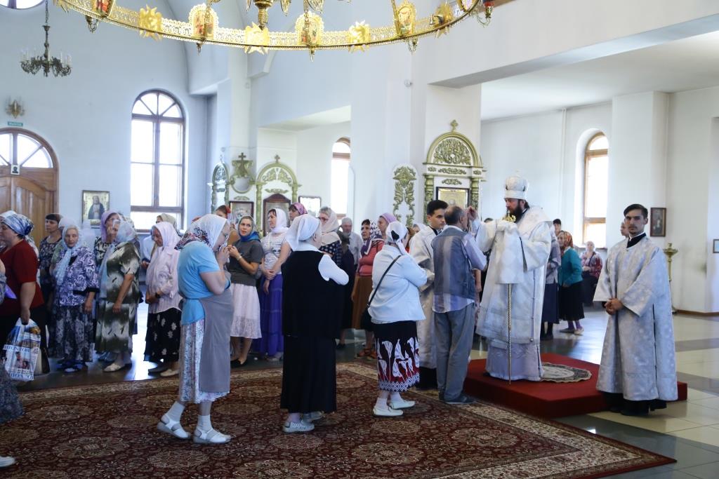 Во время чтения канона праздника архипастырь помазал многочисленных верующих освященным елеем.