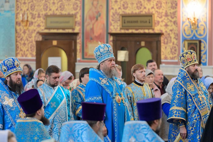В завершение богослужения Глава Казахстанского Митрополичьего округа поздравил епископат, священнослужителей, монашествующих и мирян с двунадесятым праздником и престольным днем и обратился к собравшимся с архипастырской проповедью.