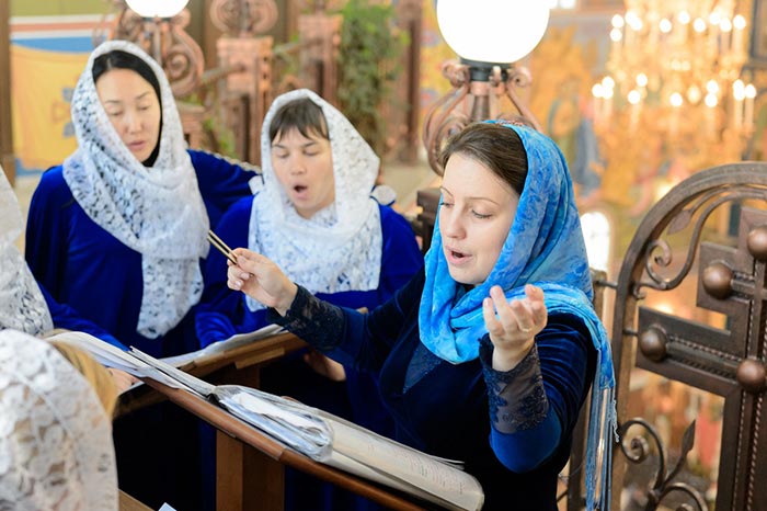 Пел хор Успенского кафедрального собора Астаны под управлением Ольги Варенцовой.