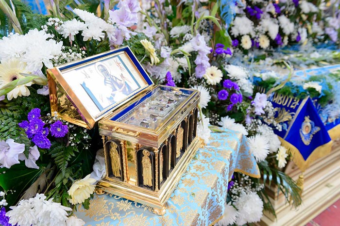 Для молитвенного поклонения и духовной поддержки верующих по благословению митрополита Александра в Успенский собор был доставлен ковчег с частицей Пояса Пресвятой Богородицы и частью камня от гробницы Божией Матери. Великие святыни Православия были переданы в дар митрополиту Александру, в бытность его архиепископом Костромским и Галичским, приснопамятным Блаженнейшим Патриархом Святого Града Иерусалима и всея Палестины Диодором.