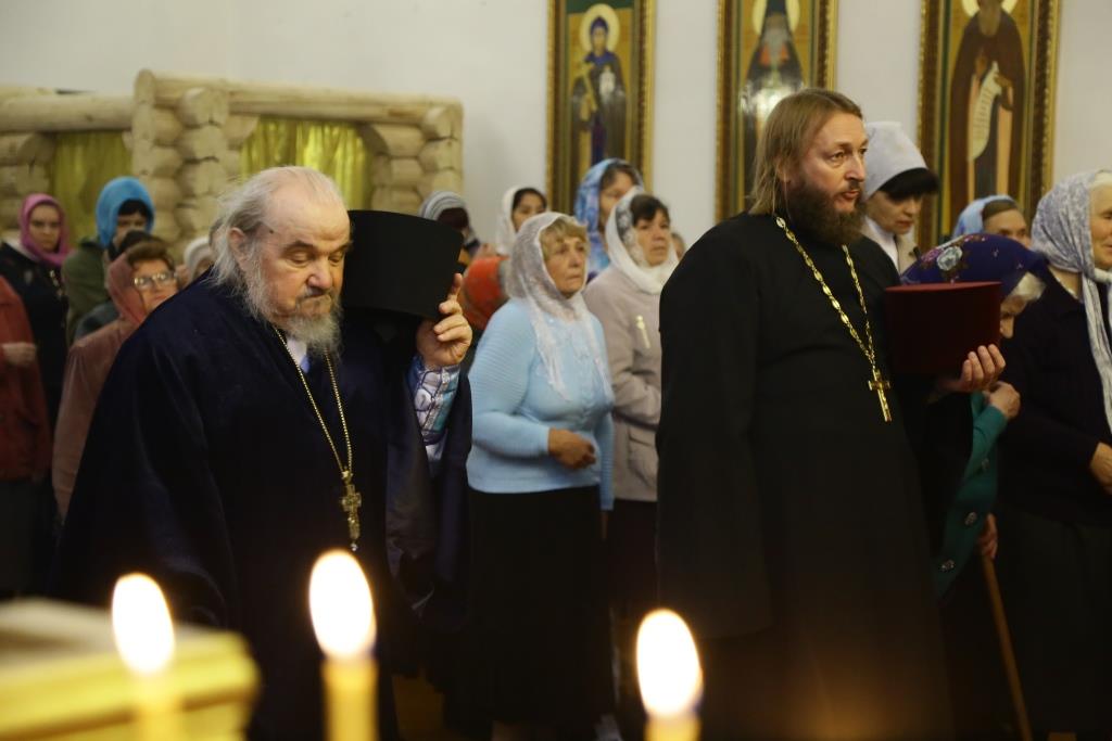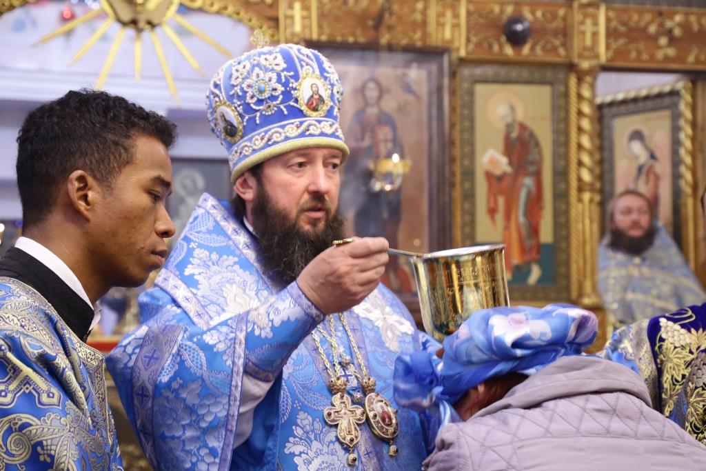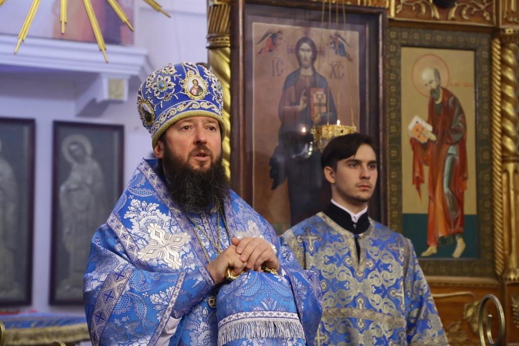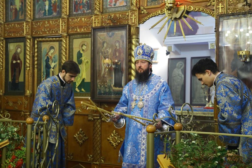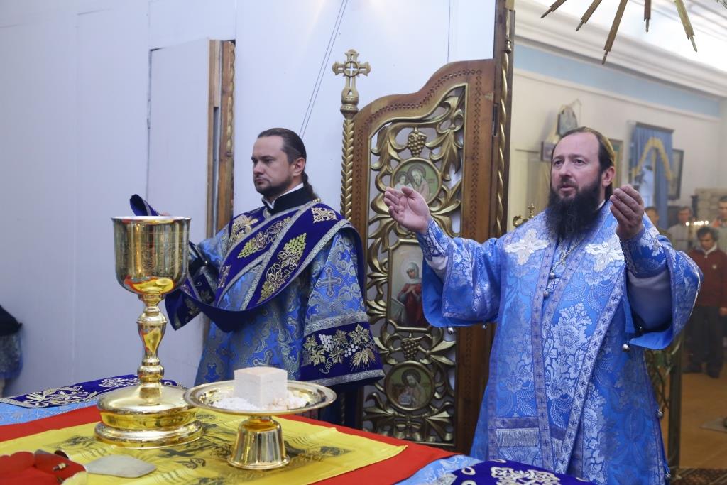 Архипастырю сослужили: духовник епархии архимандрит Спиридон (Теплухин), настоятель храма иерей Евгений Яганов, секретарь Владыки иеромонах Силуан (Магилев), настоятель Свято-Зиновьевского храма Усть-Каменогорска иерей Вячеслав Гутов. Диаконский чин возглавил протодиакон Андрей Дудник.