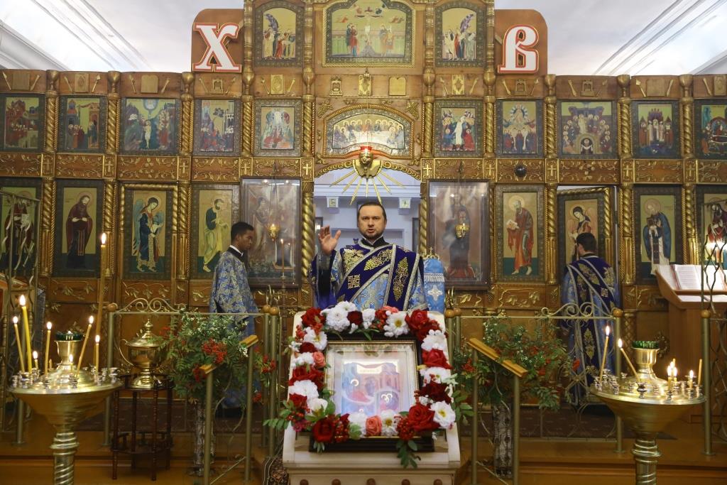 После заамвонной молитвы было совершено славление Пресвятой Богородице.