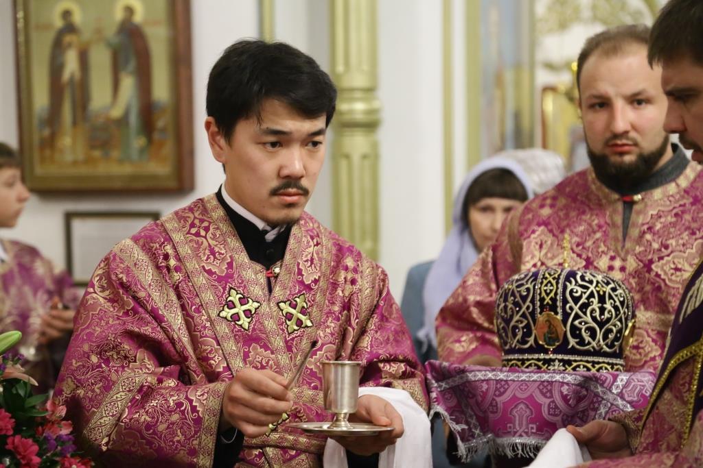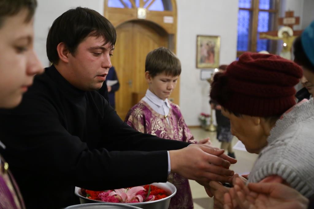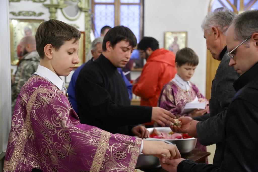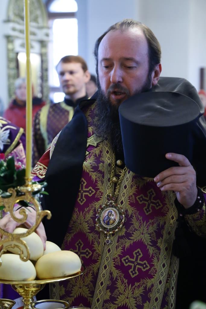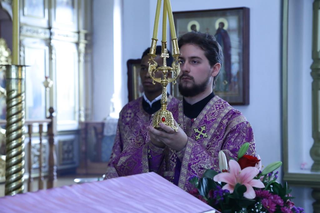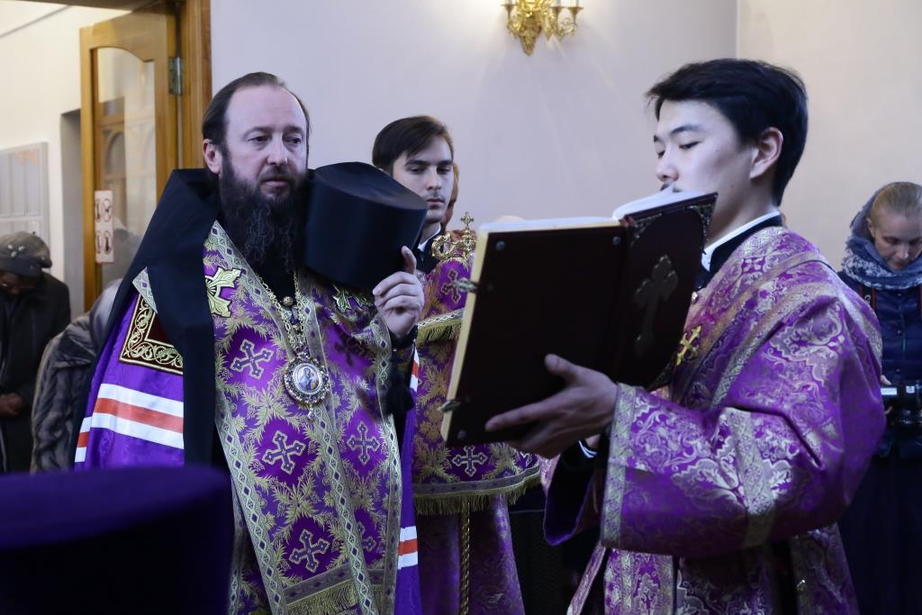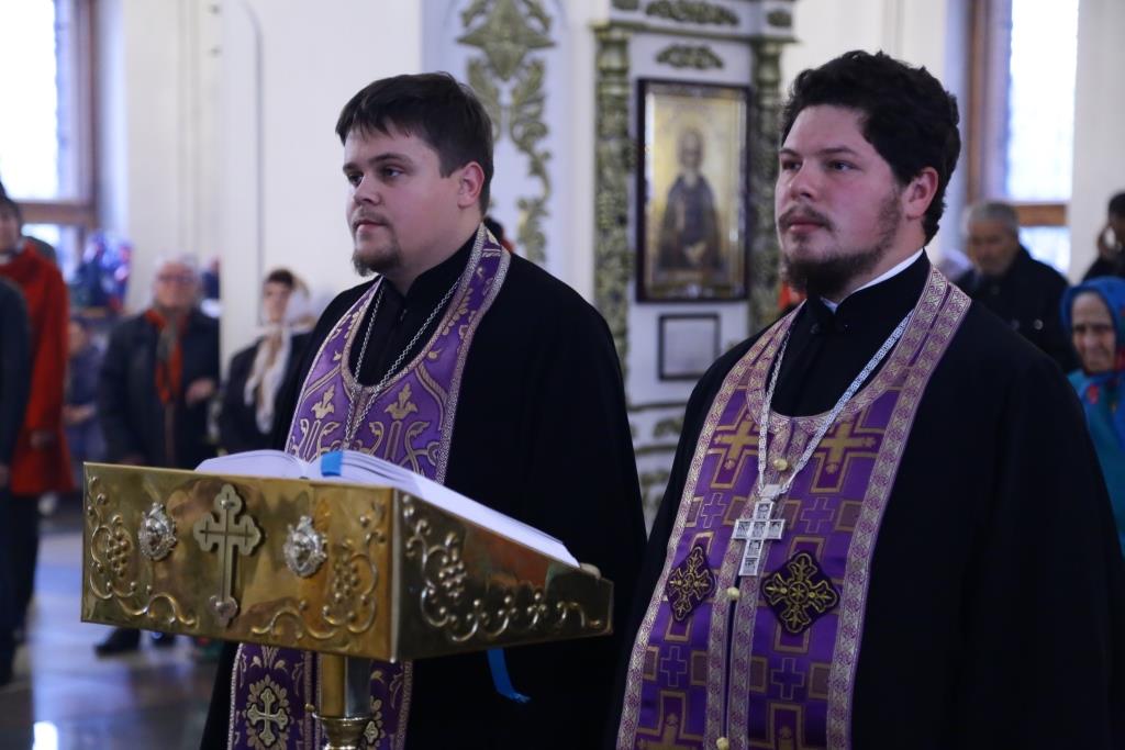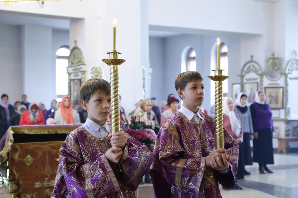 Его Преосвященству сослужили секретарь Управляющего епархией иеромонах Силуан (Магилёв), ключарь собора иеромонах Никодим (Авдеев), клирики кафедрального храма.