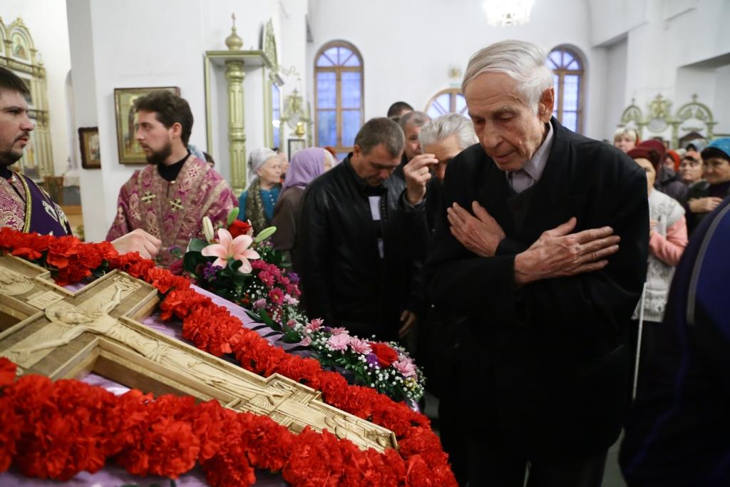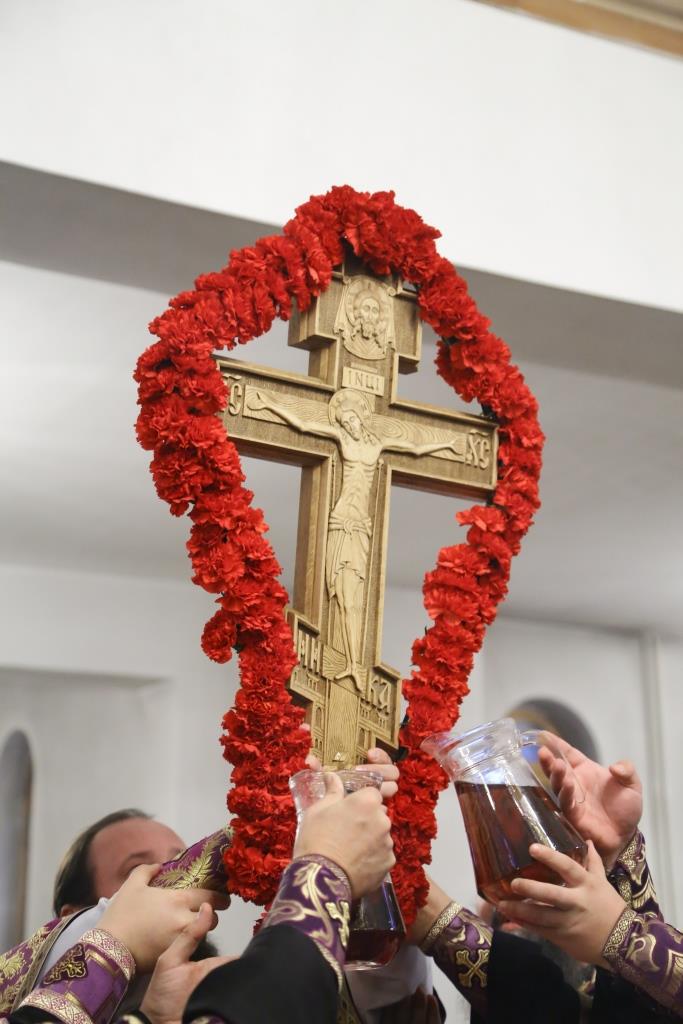 После великого славословия епископ Амфилохий совершил чин воздвижения Креста.