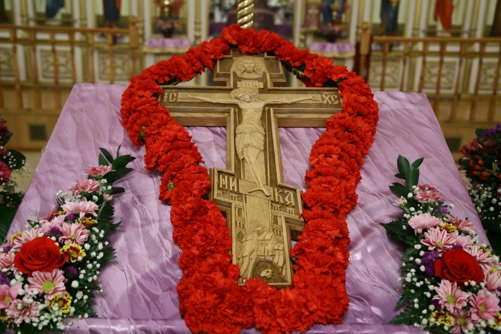 Перед всенощным бдением Крест, при совершении особых песнопений, переносится с жертвенника на престол. После великого славословия — вынос Креста и поклонение ему, при архиерейском богослужении либо в соборных храмах - по архипастырскому благословению - совершается чин воздвижения креста.