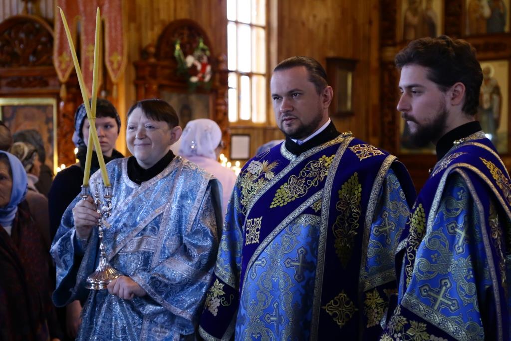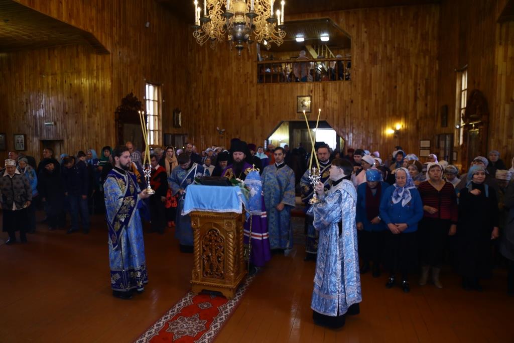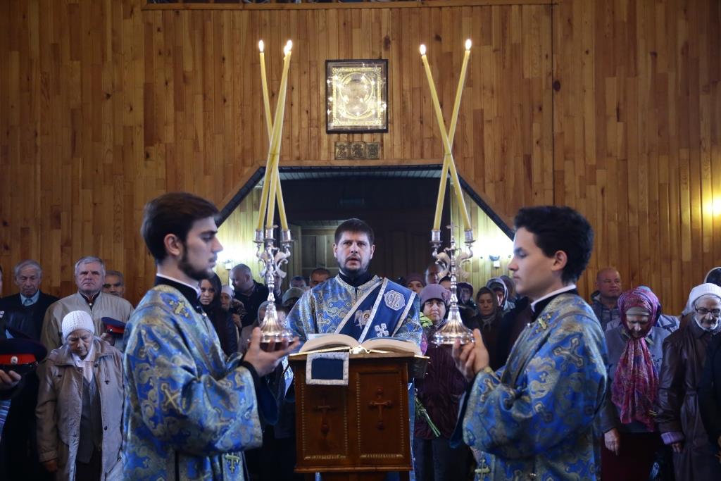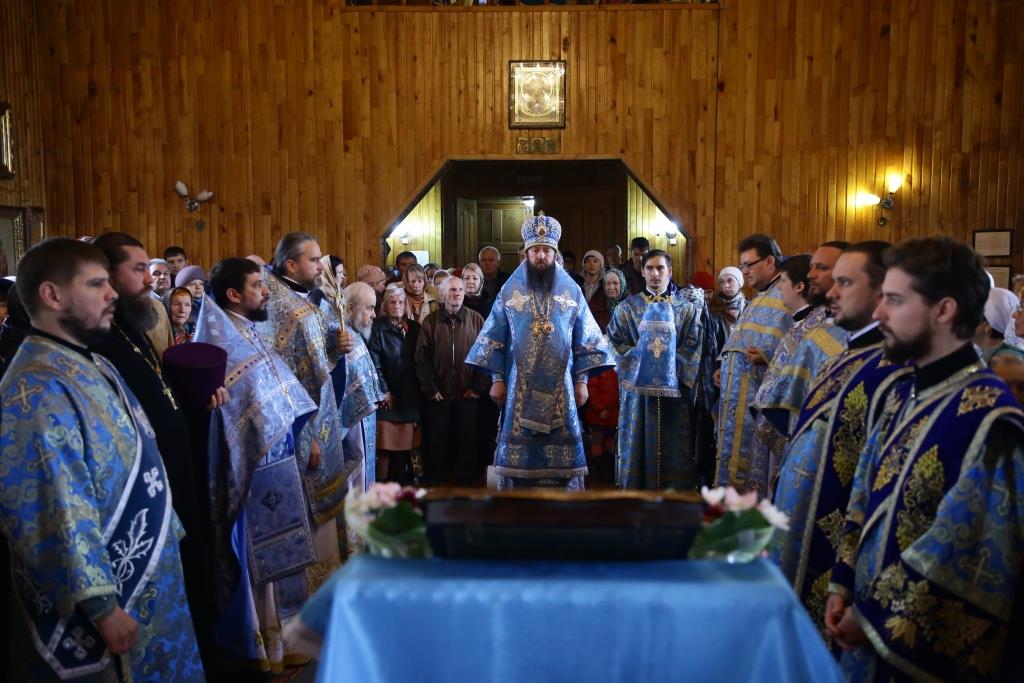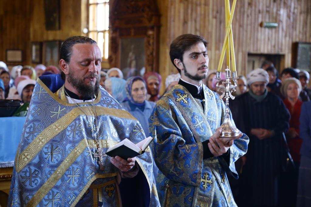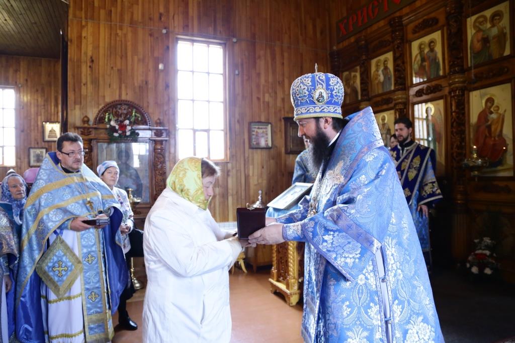 В завершение Божественной литургии состоялось славление Покрову Божией Матери – священнослужители и хор исполнили тропарь, кондак и величание празднику.