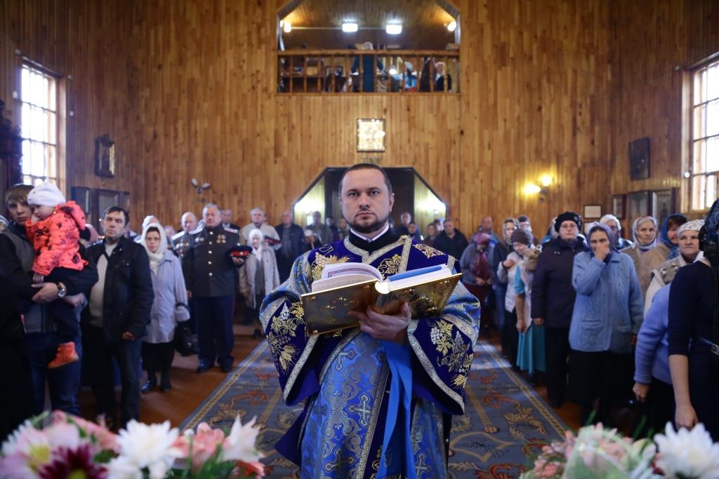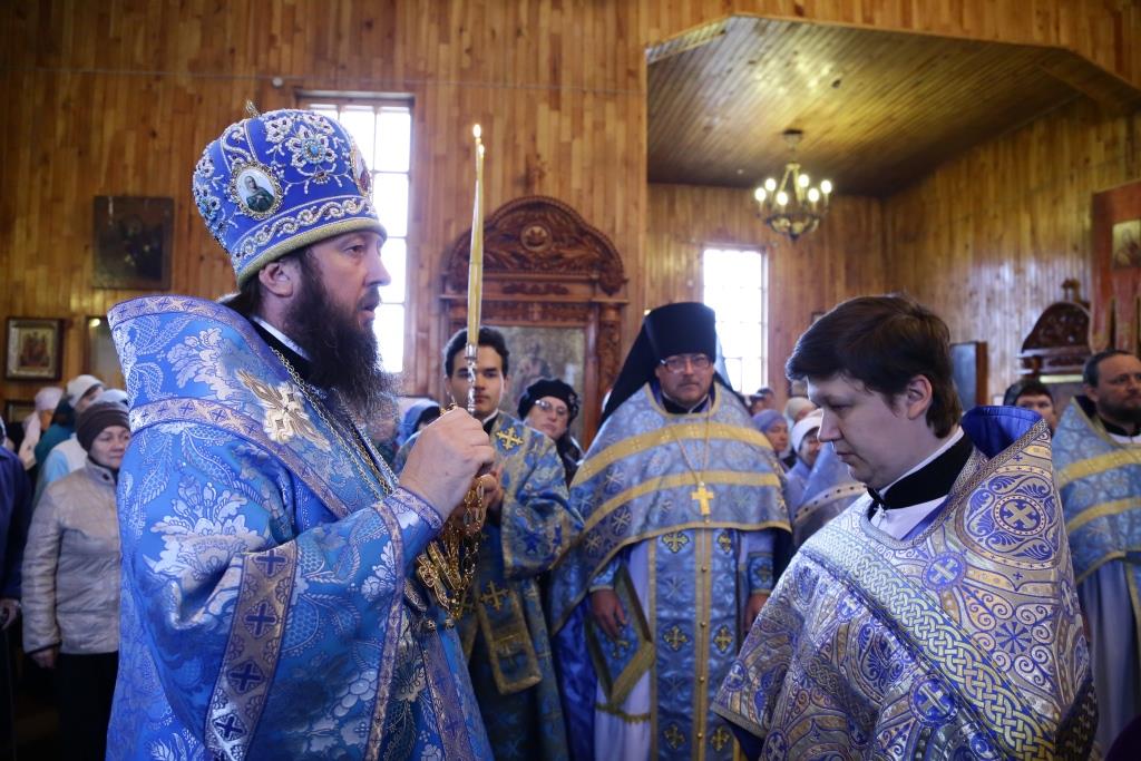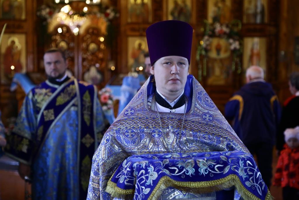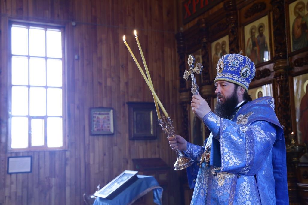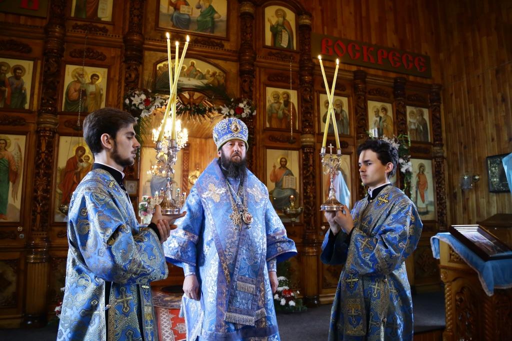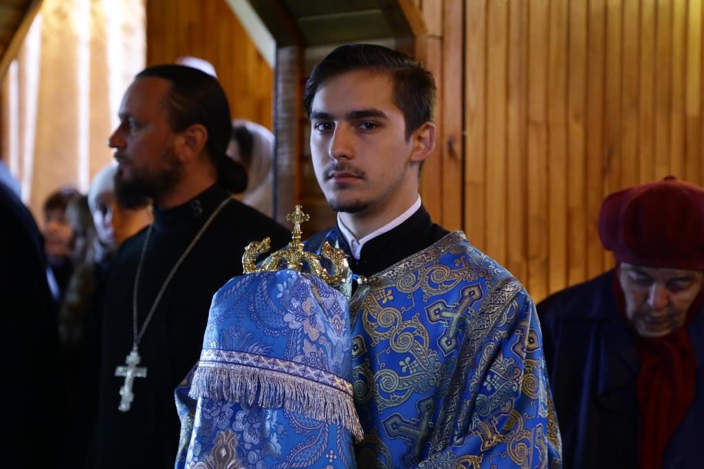 В завершение Божественной литургии состоялось славление Покрову Божией Матери – священнослужители и хор исполнили тропарь, кондак и величание празднику.