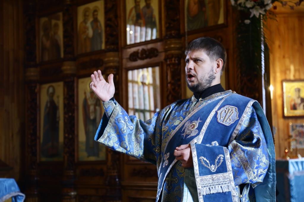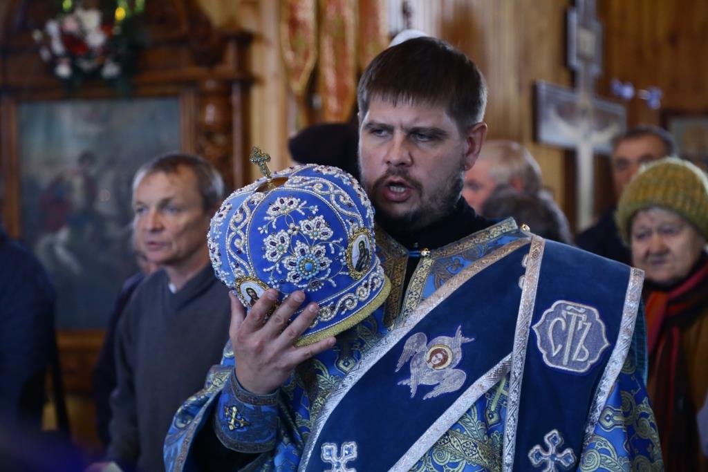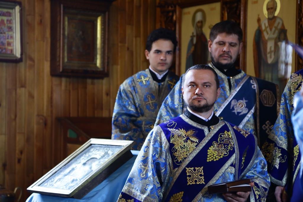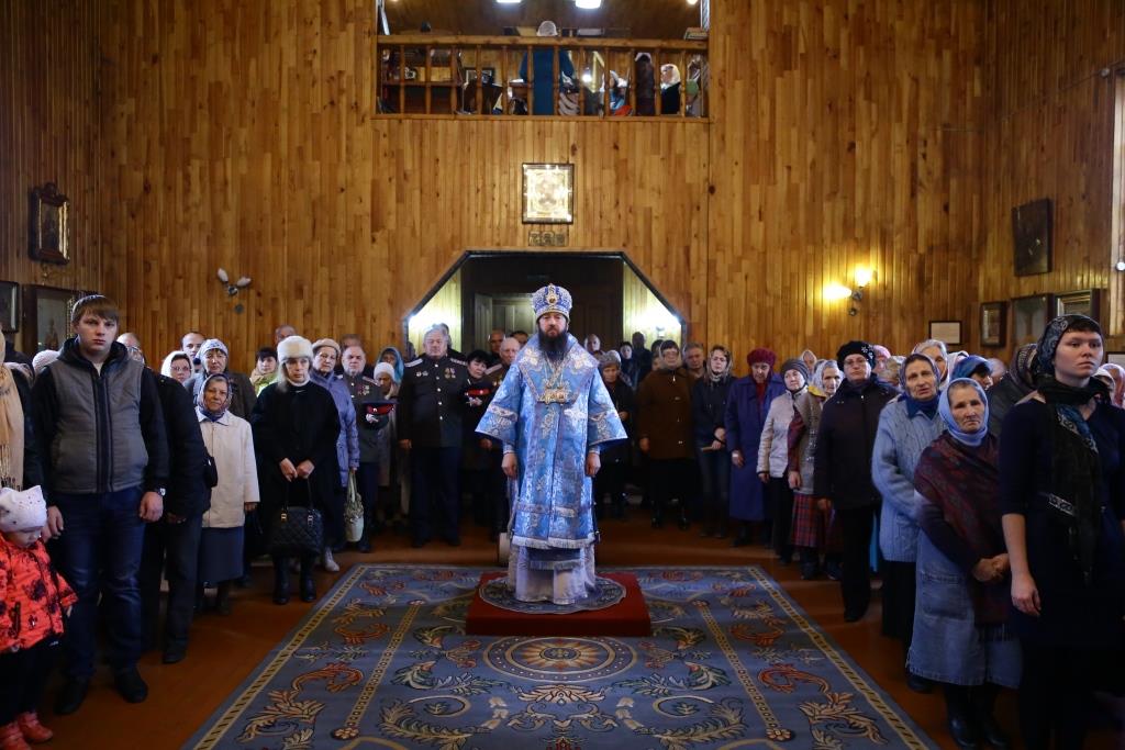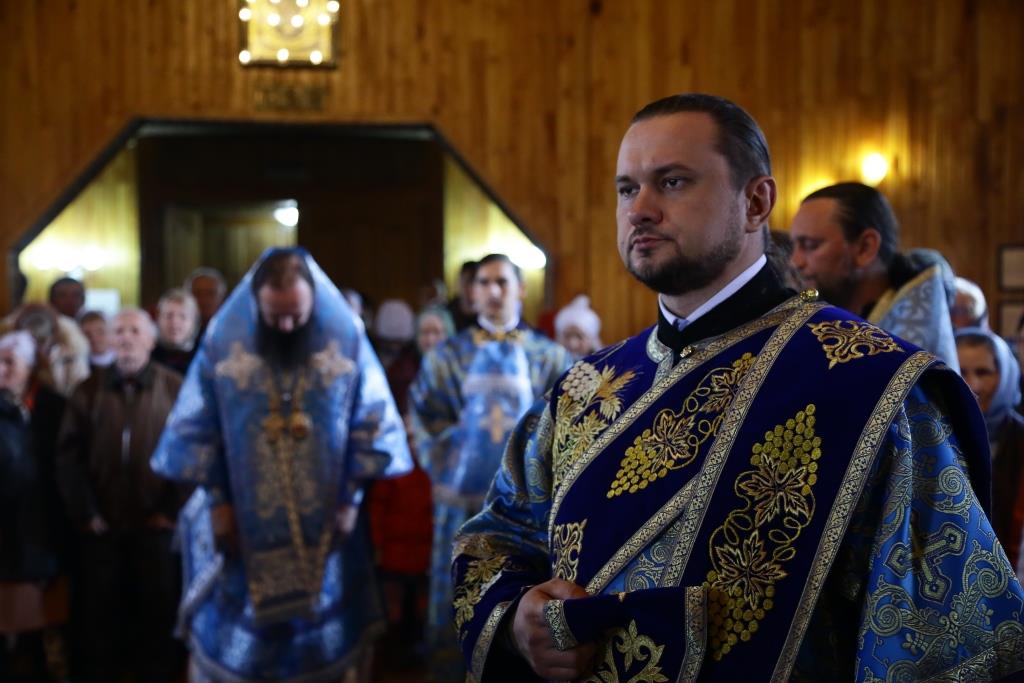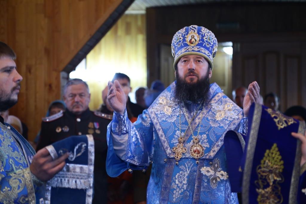 В завершение Божественной литургии состоялось славление Покрову Божией Матери – священнослужители и хор исполнили тропарь, кондак и величание празднику.