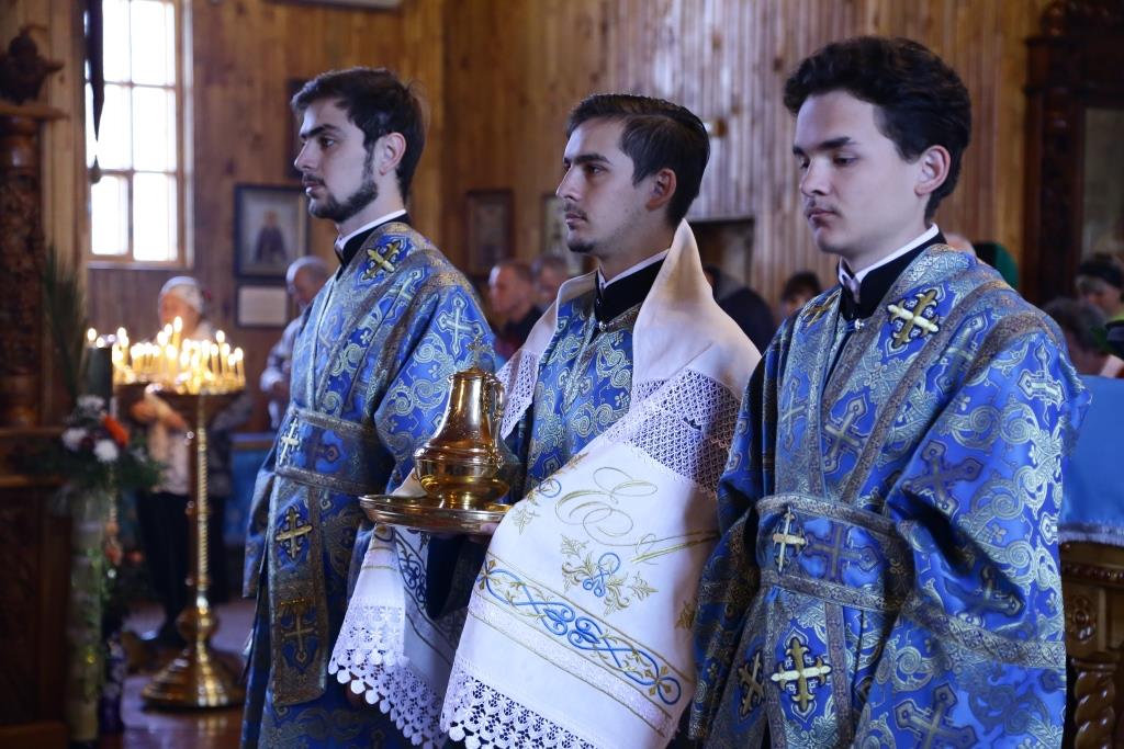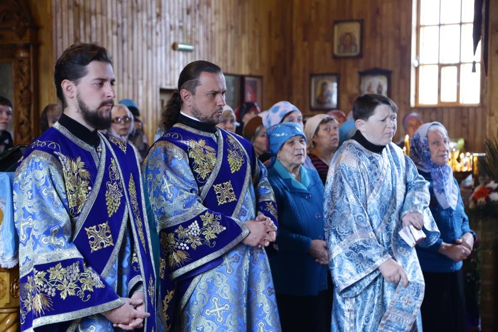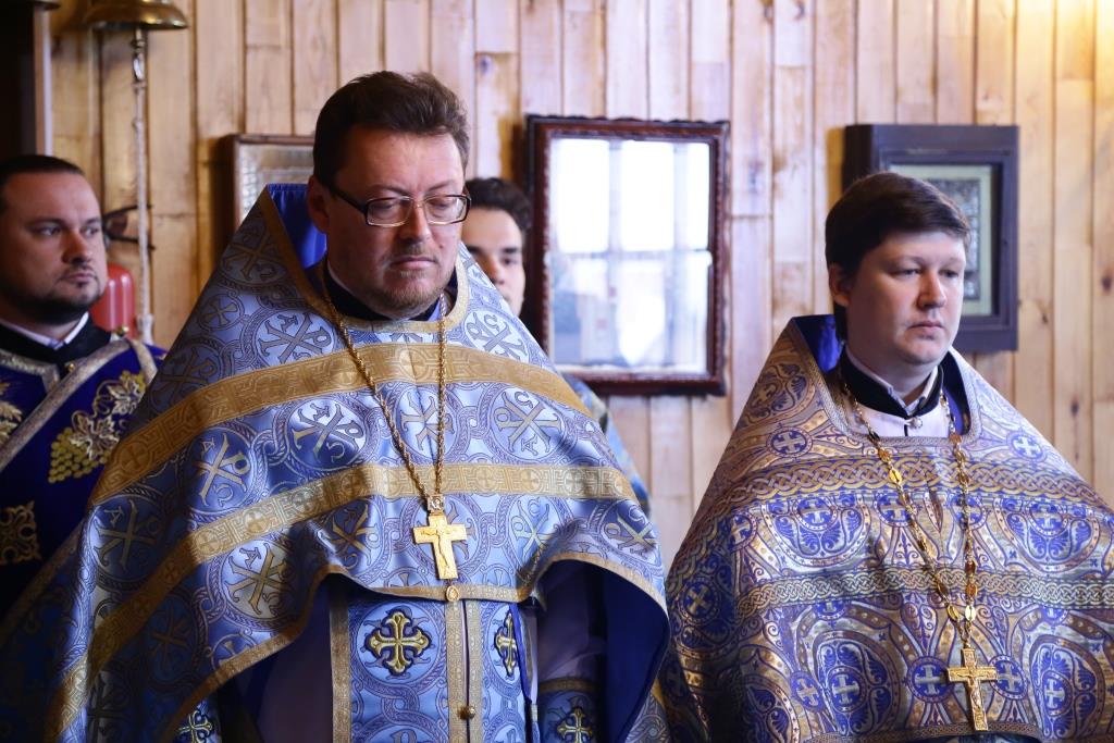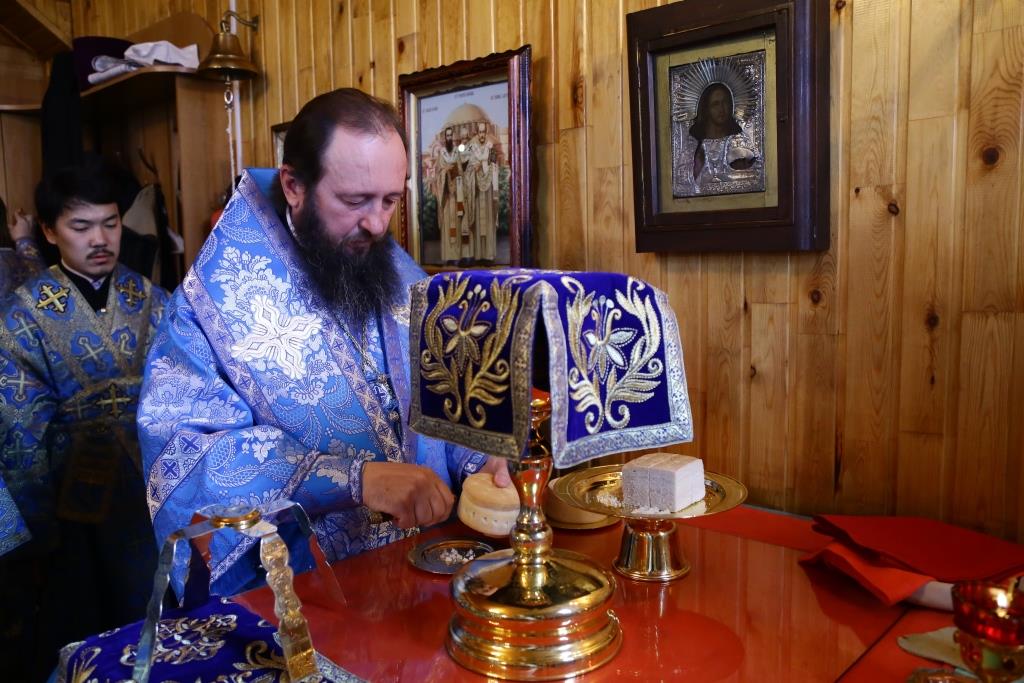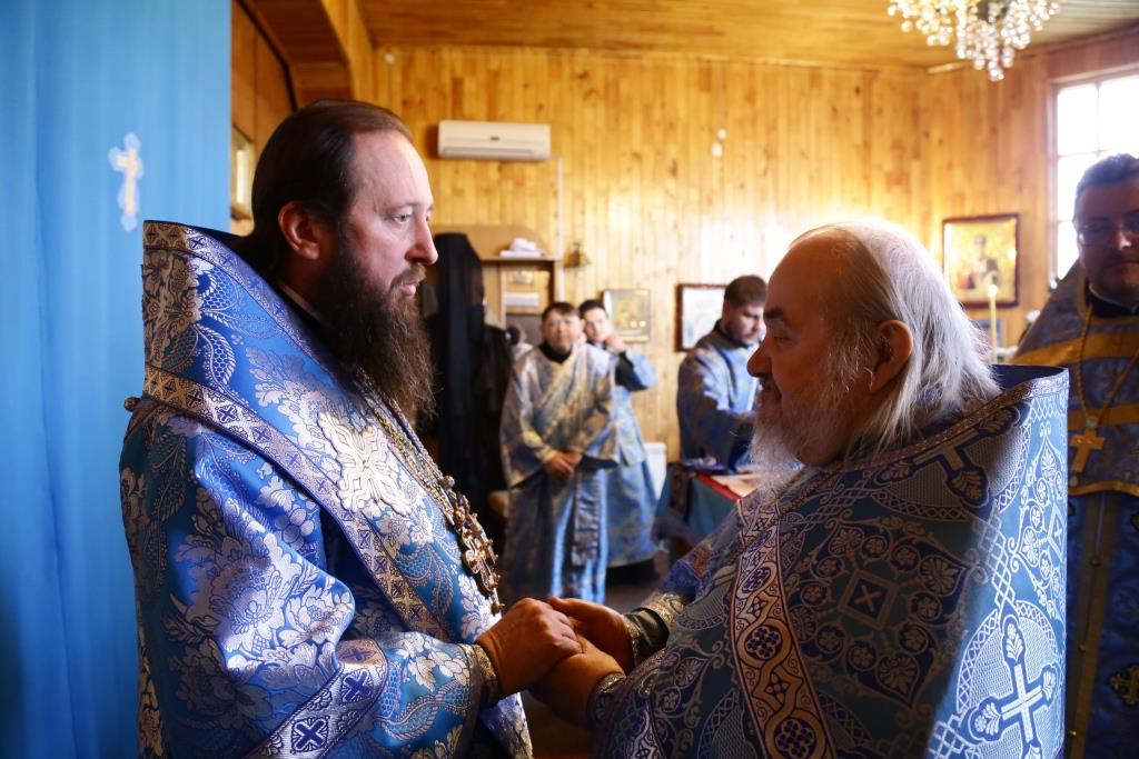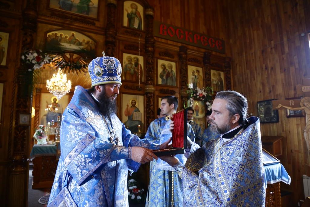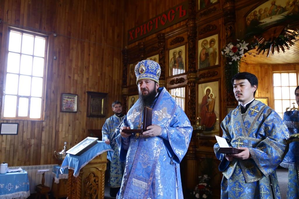Архиерею сослужили: духовник епархии архимандрит Спиридон (Теплухин), благочинный Усть-Каменогорского церковного округа, настоятель храма иерей Алексий Анищенко; председатель Епархиальной комиссии по делам молодёжи иерей Вячеслав Гутов, духовенство Покровской церкви, диаконский чин. На малом входе за усердное служение Святой Церкви архипастырь наградил клирика храма иерея Романа Подрезова очередной священнической наградой – правом ношения наперсного Креста.