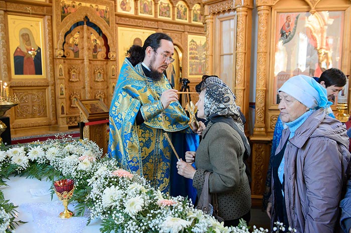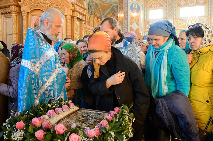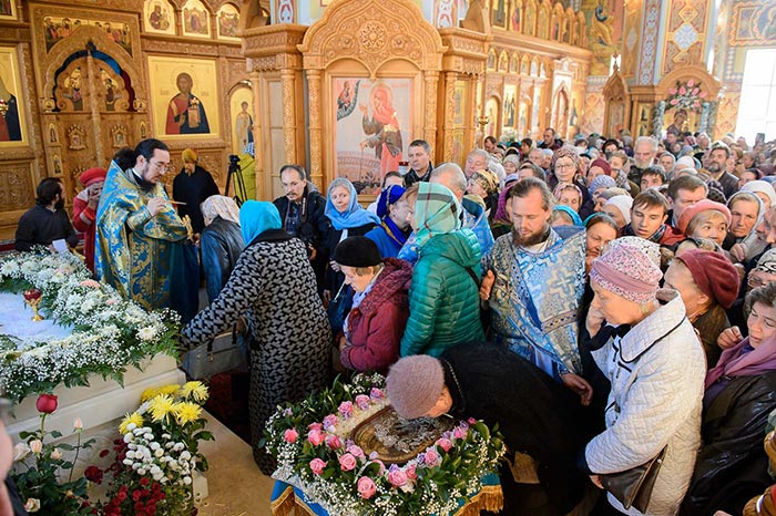 По окончании литии молящиеся были помазаны елеем от лампады, теплящейся на гробнице святителя.