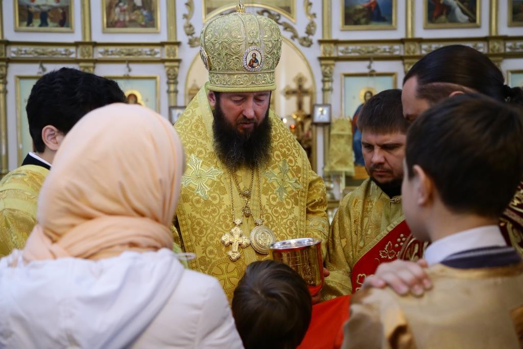 Епископ Усть-Каменогорский и Семипалатинский Амфилохий возглавил служение Божественной литургии в храме во имя святых апостола Андрея Первозванного столицы Рудного Алтая.