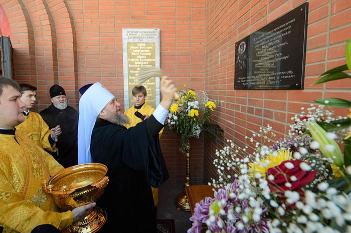 В завершение Литургии состоялось славление перед ковчегом с мощами равноапостольного князя Владимира, после чего иерархи, сослужащее духовенство и верующие вышли на паперть собора, где состоялось открытие памятной доски в честь 1000-летия преставления святого князя Владимира. На доске выгравирован образ равноапостольного князя Владимира и запечатлена цитата из знаменитого памятника древнерусской литературы «Слова о Законе и Благодати» митрополита Киевского Илариона, прославляющего Крестителя Руси: «Радуйся, апостоле среди владычествующих, ибо тобою приблизились мы к Богу и познали Жизнь Божественную – Христа».