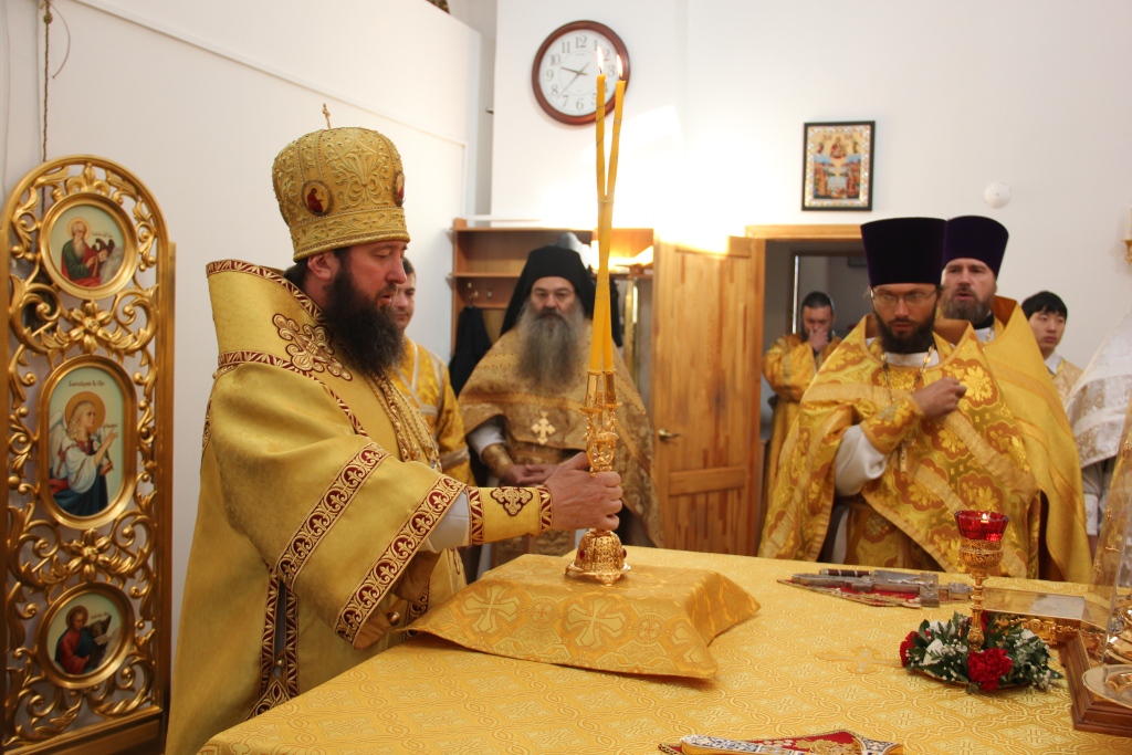 Управляющий Усть-Каменогорской и Семипалатинской епархией Преосвященный Епископ Амфилохий возглавил служение Божественной Литургии в Свято-Андреевском кафедральном соборе города Усть-Каменогорск. Владыке сослужили насельник афонского Спасо–Преображенского монастыря Кутлумуш иеромонах Филофей, клирик Томской митрополии иерей Алексий Щапов, клирики Усть-Каменогорского благочиния.