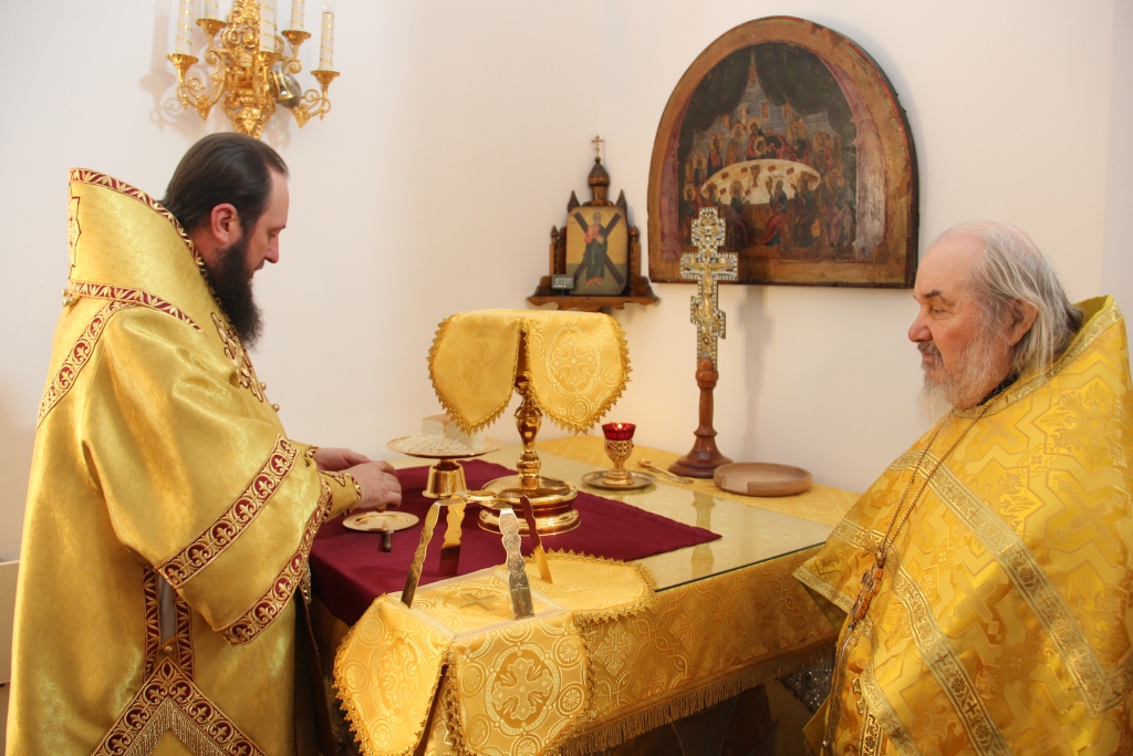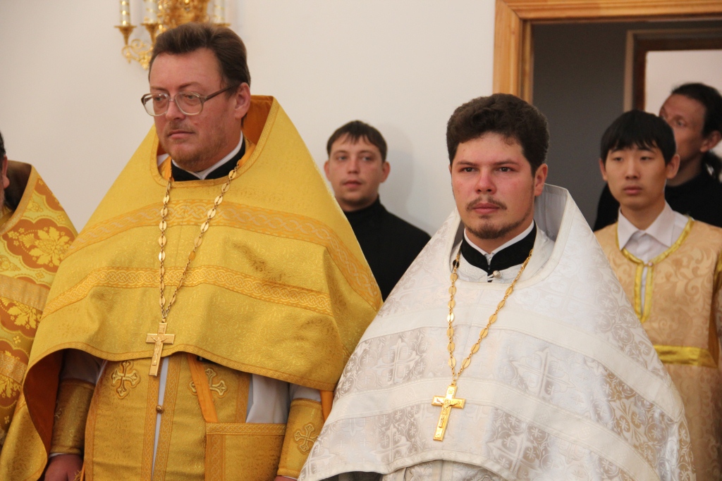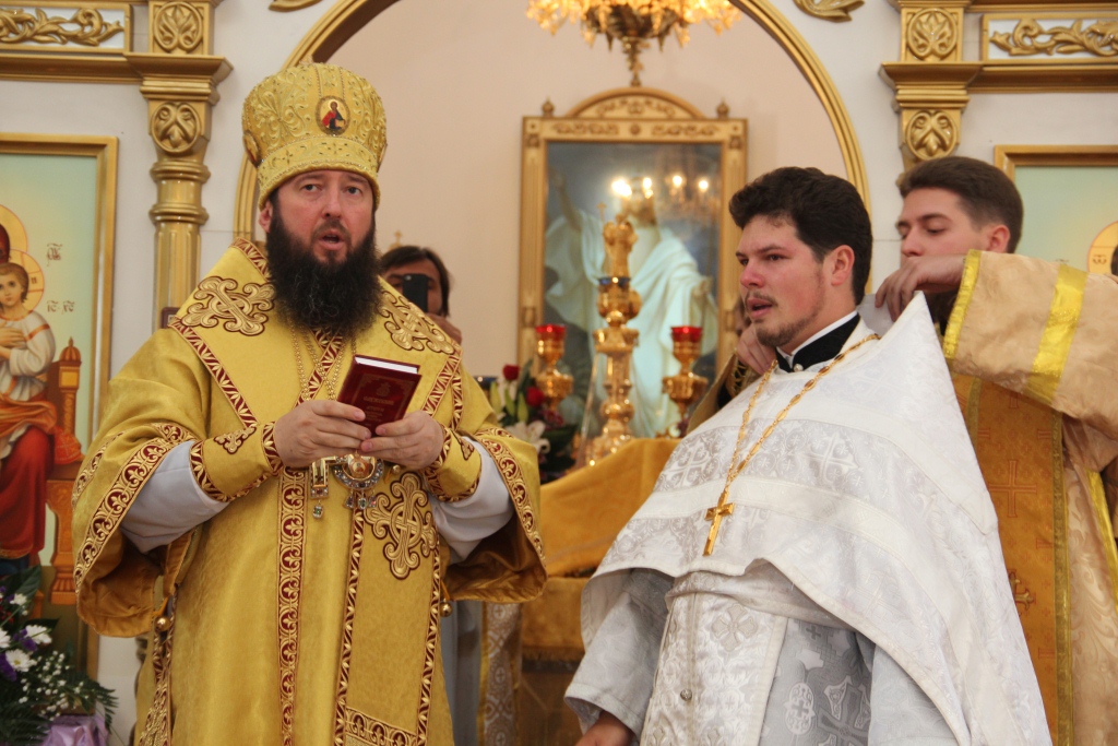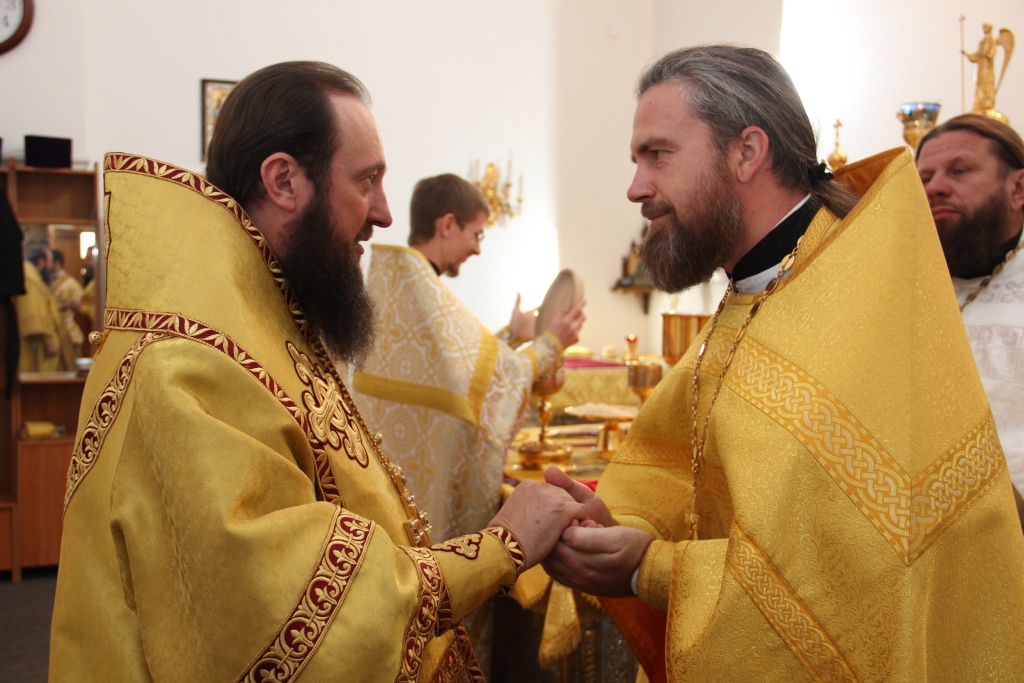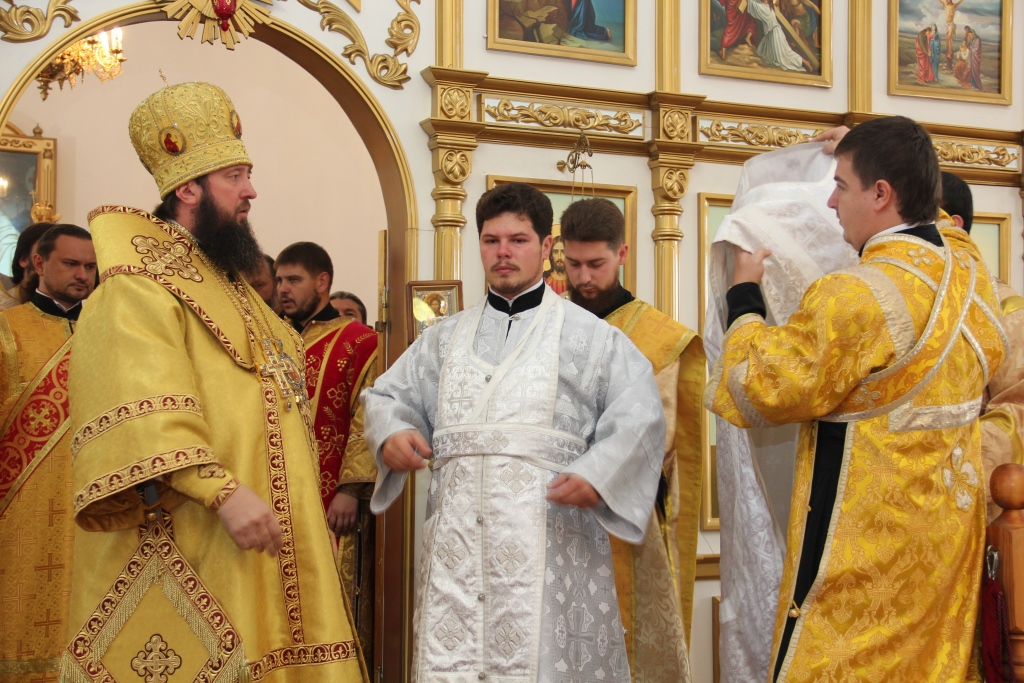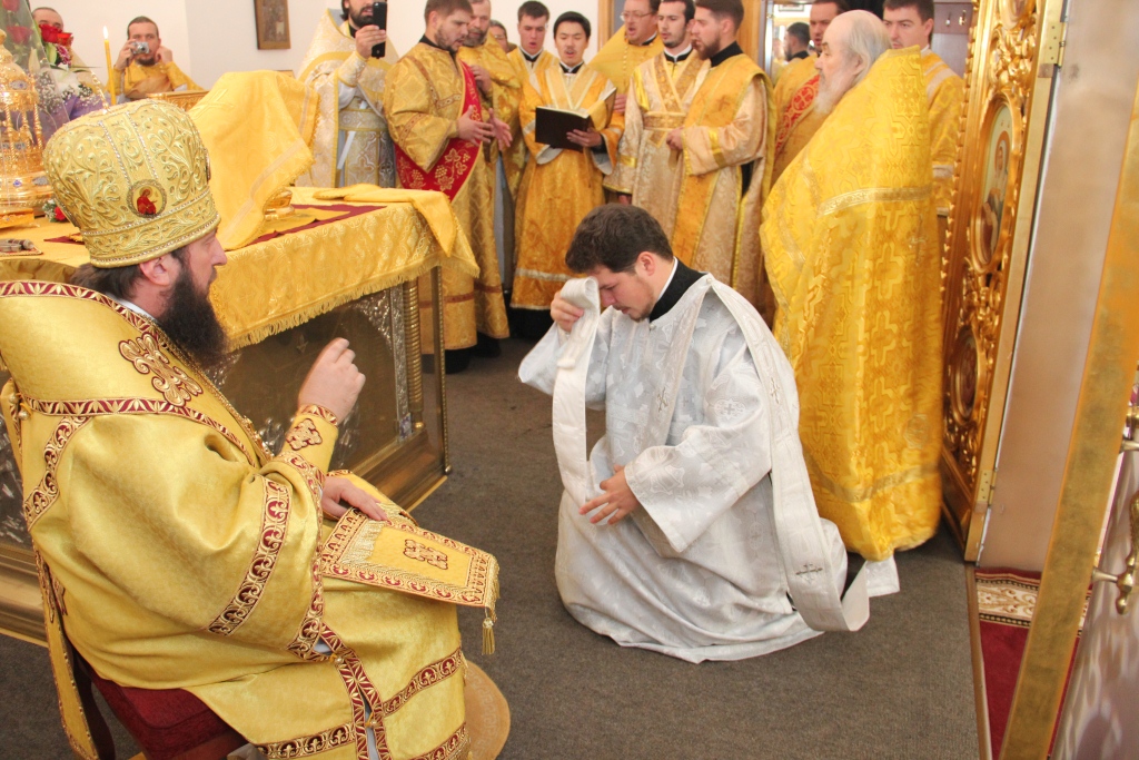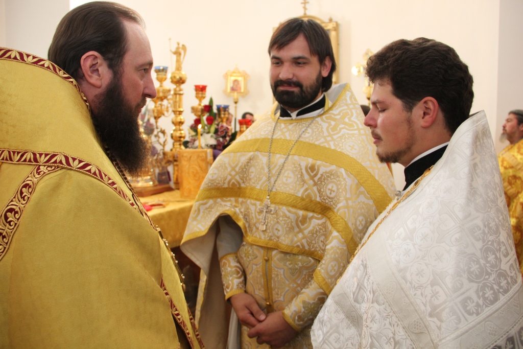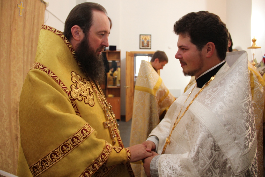 За Божественной Литургией Преосвященный Архипастырь рукоположил в сан пресвитера с возложением набедренника и наперсного креста выпускника Московской Духовной Академии, насельника Свято-Троицкого мужского монастыря, клирика Свято-Андреевского кафедрального собора иеродиакона Силуана (Магилева). Иеромонаху Силуану предстоит нести свое пастырское служение в клире духовенства кафедрального собора.