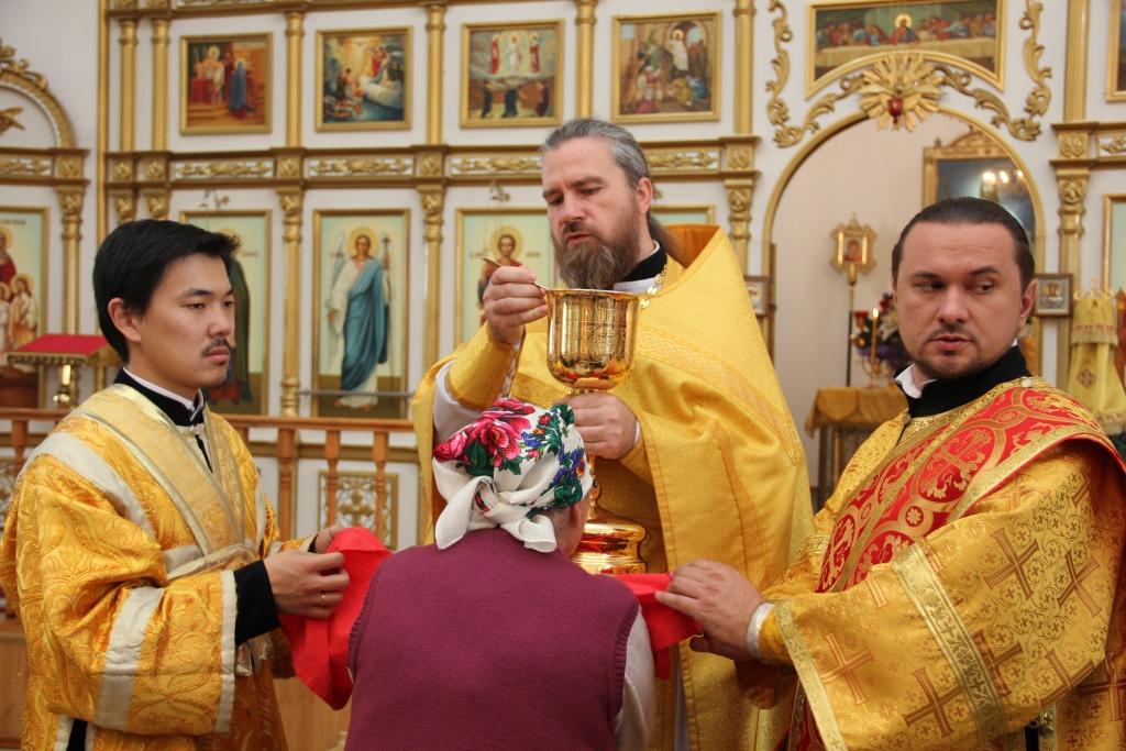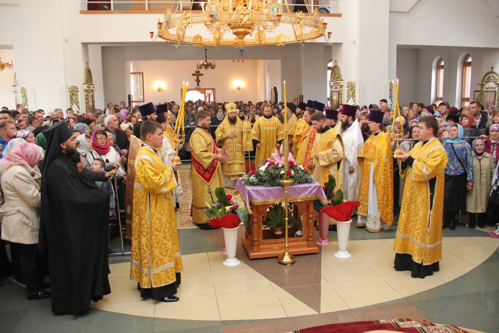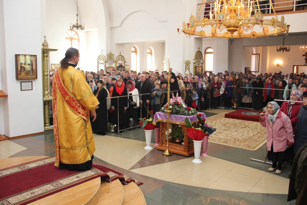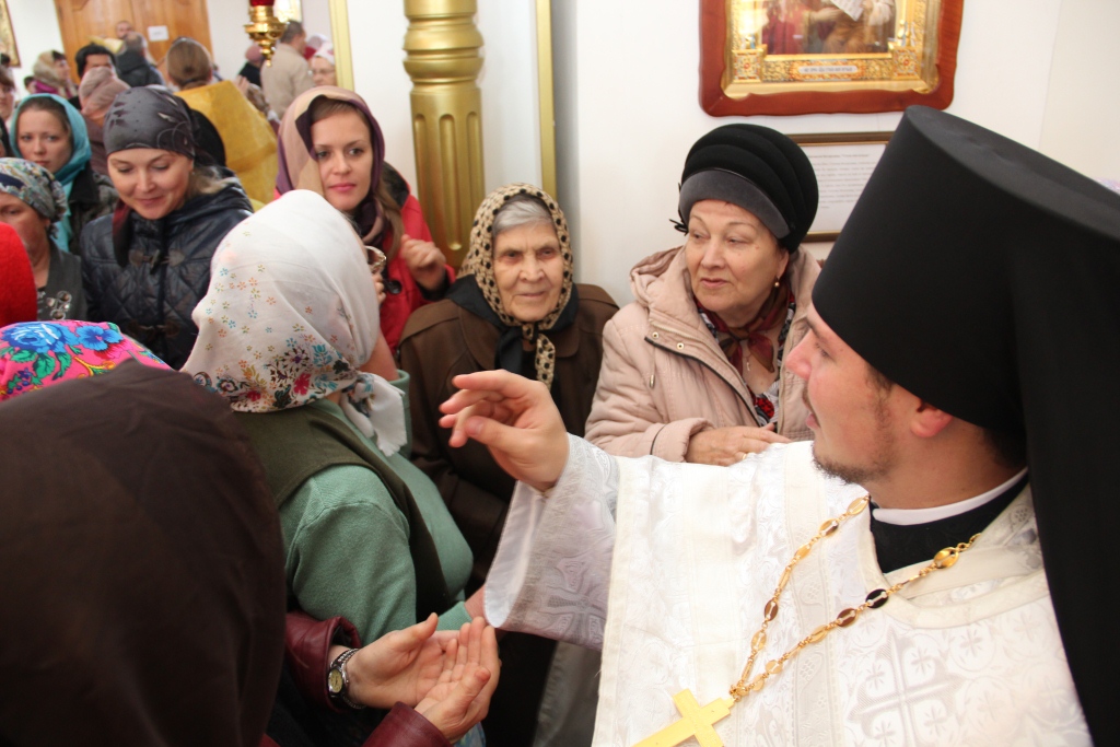 В воскресный день количество паломников к частице Животворящего Древа Креста Господня, пребывание которой в пределах Усть-Каменогорской епархии подходит к концу, достигло величайшего показателя за все дни. В общей сложности ко Кресту подошли около 20 тысяч человек. Шли все: взрослые и дети, вели под руки или несли на руках немощных и пожилых, прикладывались к Животворящему Древу и христиане, и представители иных религиозных конфессий. Храм был полон, и очередь к Святыне начиналась еще на улице. Святые Христовы Тайны в этот день преподавали из трех Чаш, и множество людей причастилось у Креста Христова Его Святых Тела и Крови.