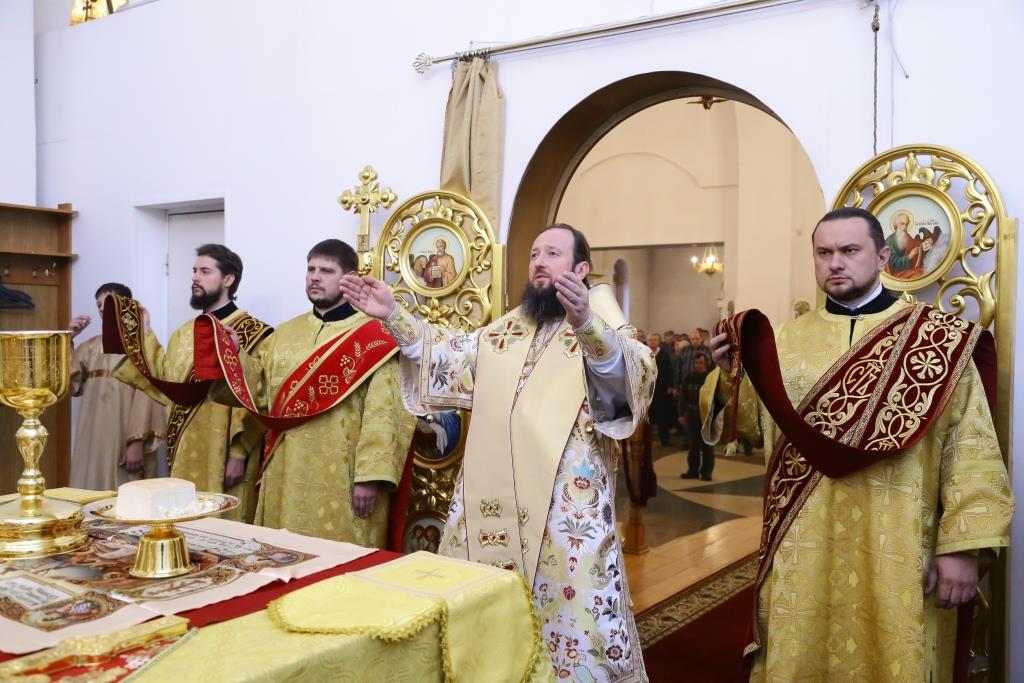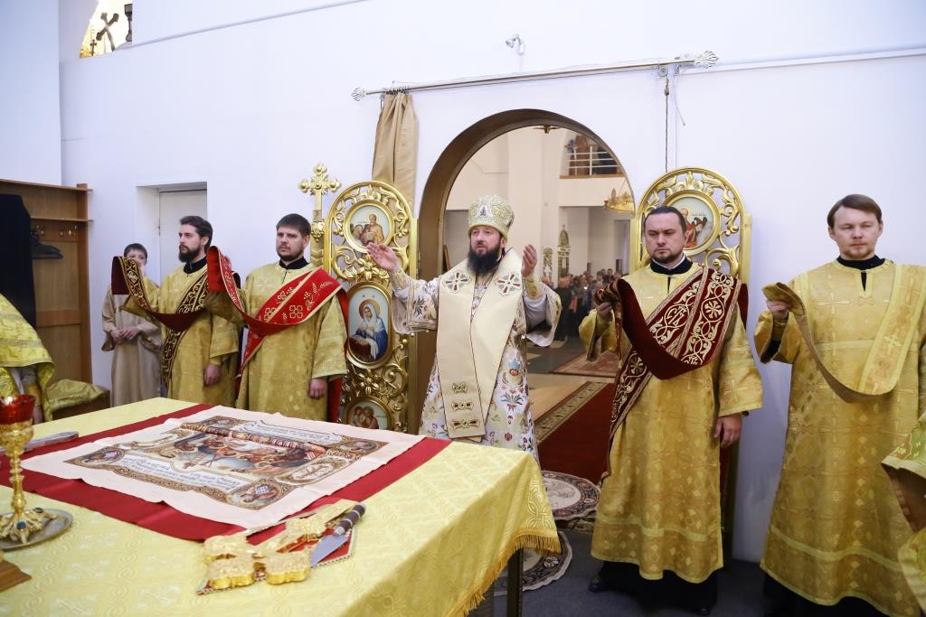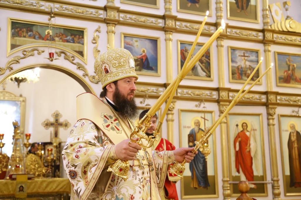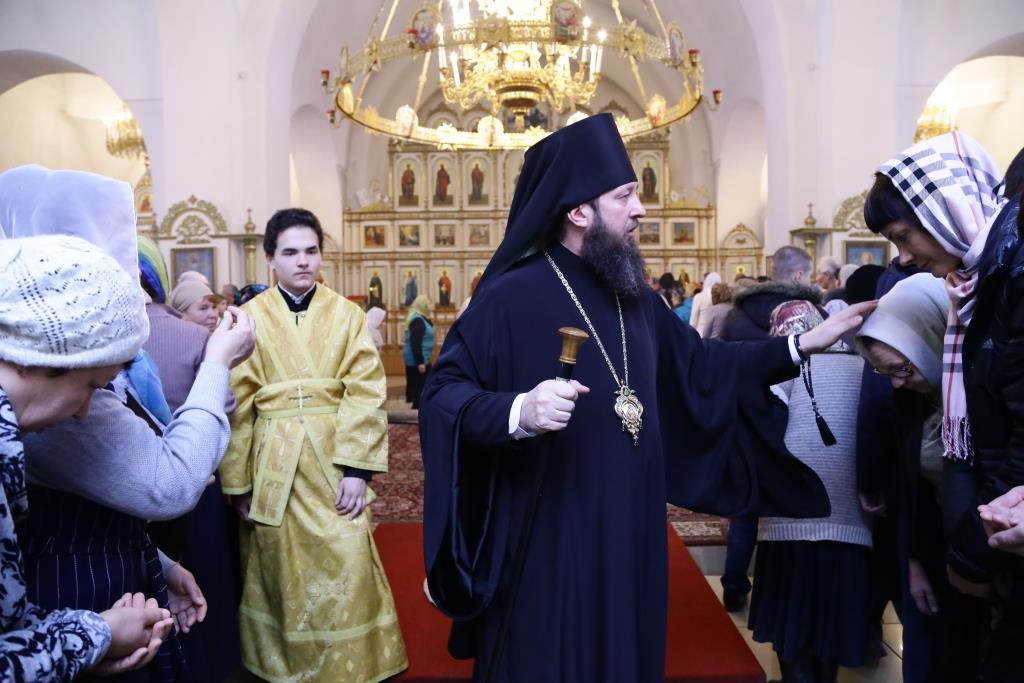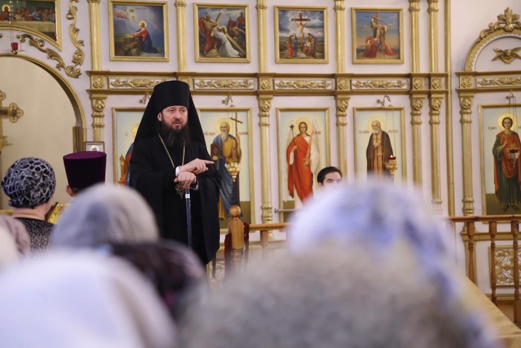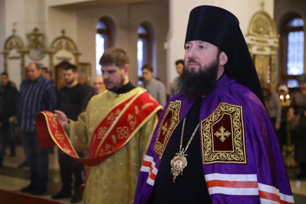 Его Преосвященству сослужили: духовник епархии архимандрит Спиридон (Теплухин), клирики храма иерей Алексий Клепиков и иерей Константин Дьяков.