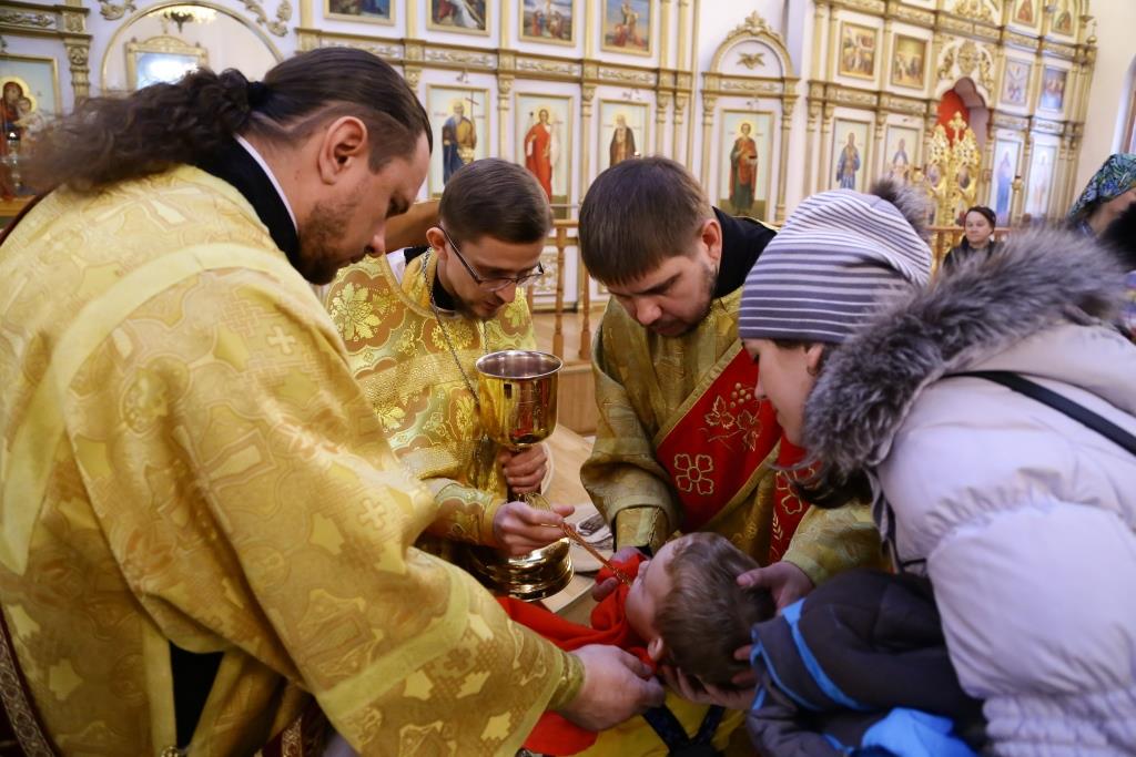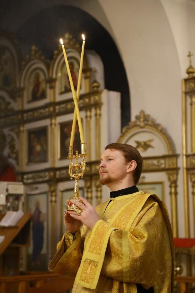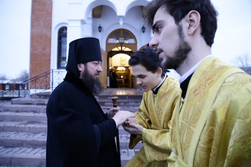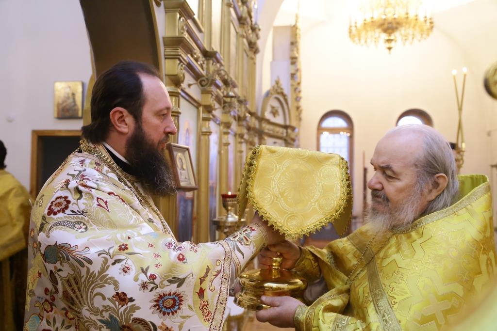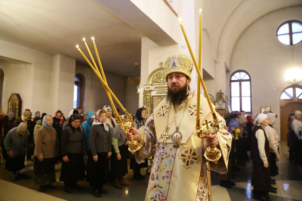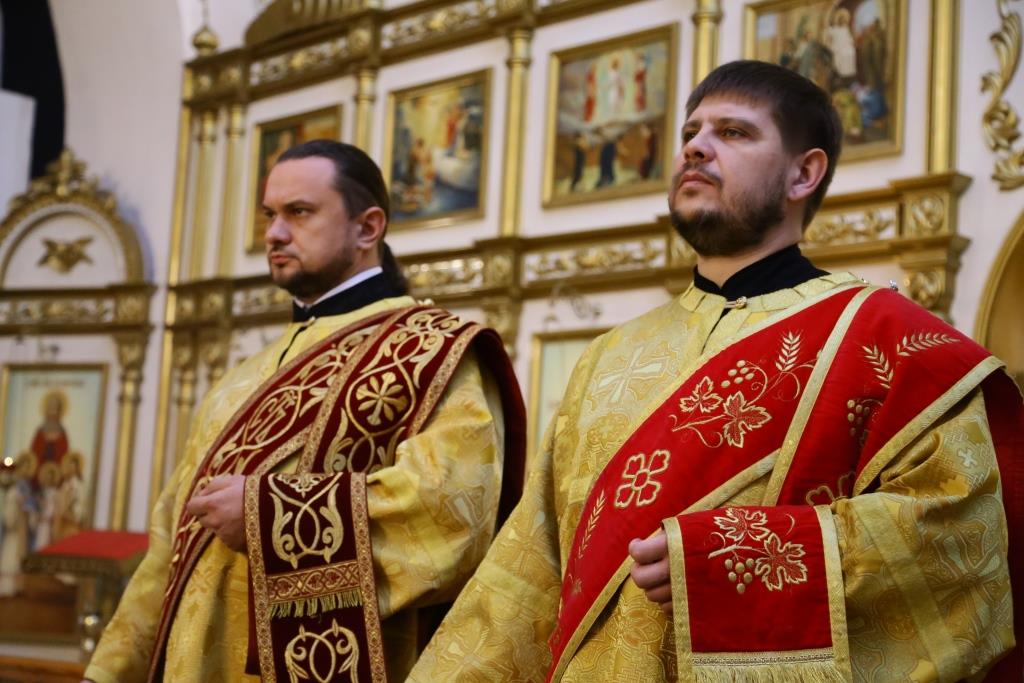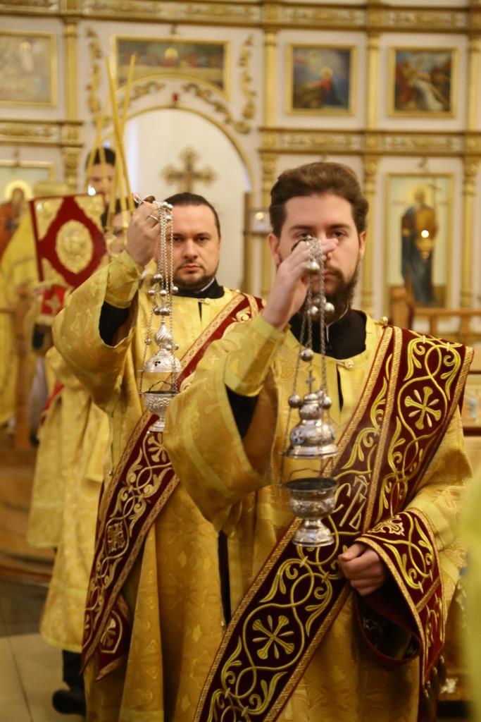 Его Преосвященству сослужили: духовник епархии архимандрит Спиридон (Теплухин), клирики храма иерей Алексий Клепиков и иерей Константин Дьяков.