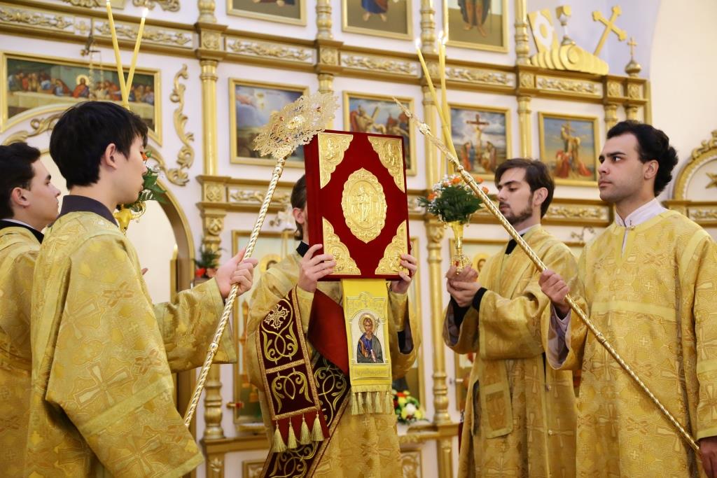 За Богослужением пел хор кафедрального собора под управлением регента В. Фёдоровой.