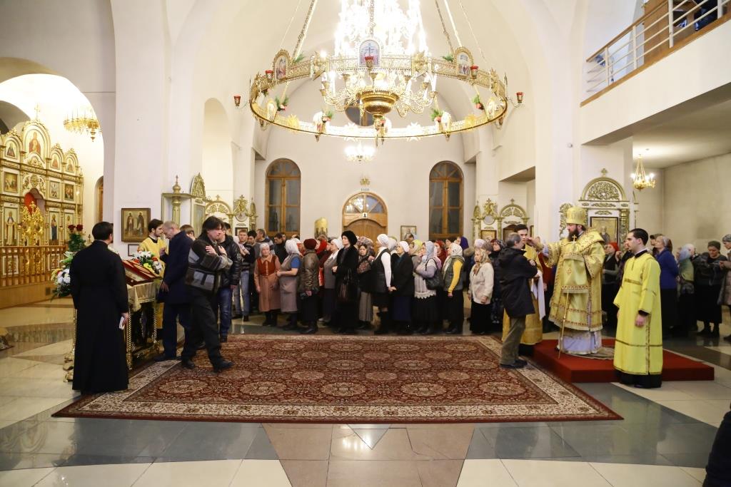 После прочтения евангельского зачала Преосвященный Владыка помазал духовенство и прихожан освященным елеем.