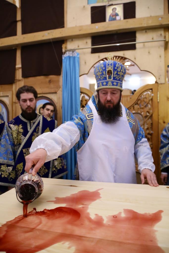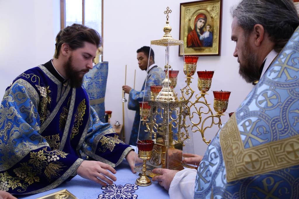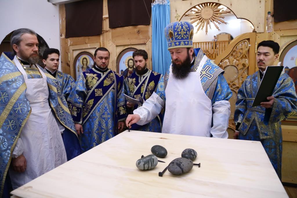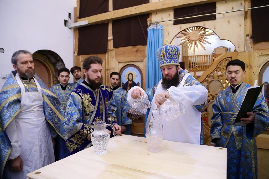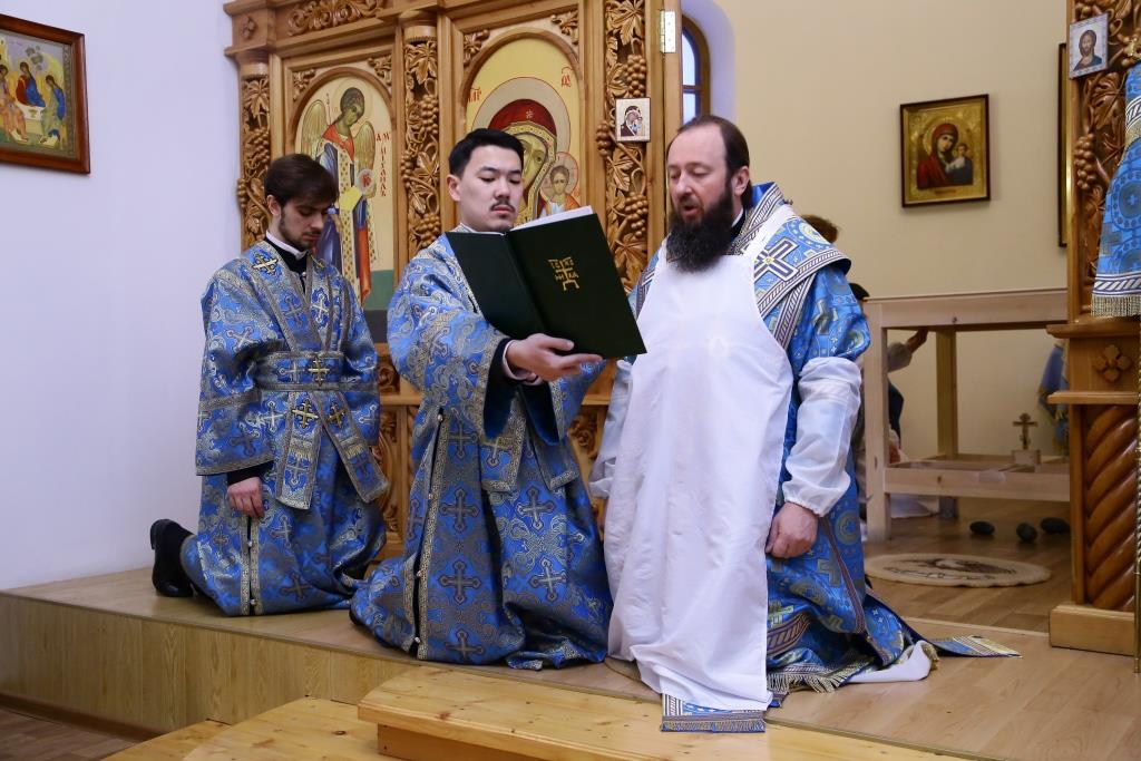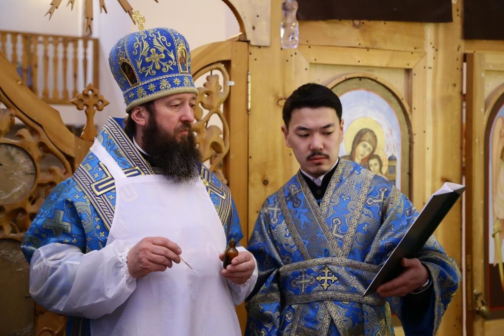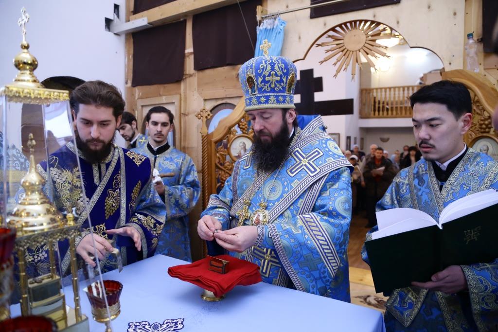Песнопения чина освящения и Божественной Литургии исполнял хор Свято-Покровского храма города Усть-Каменогорска под управлением регента Анны Король.