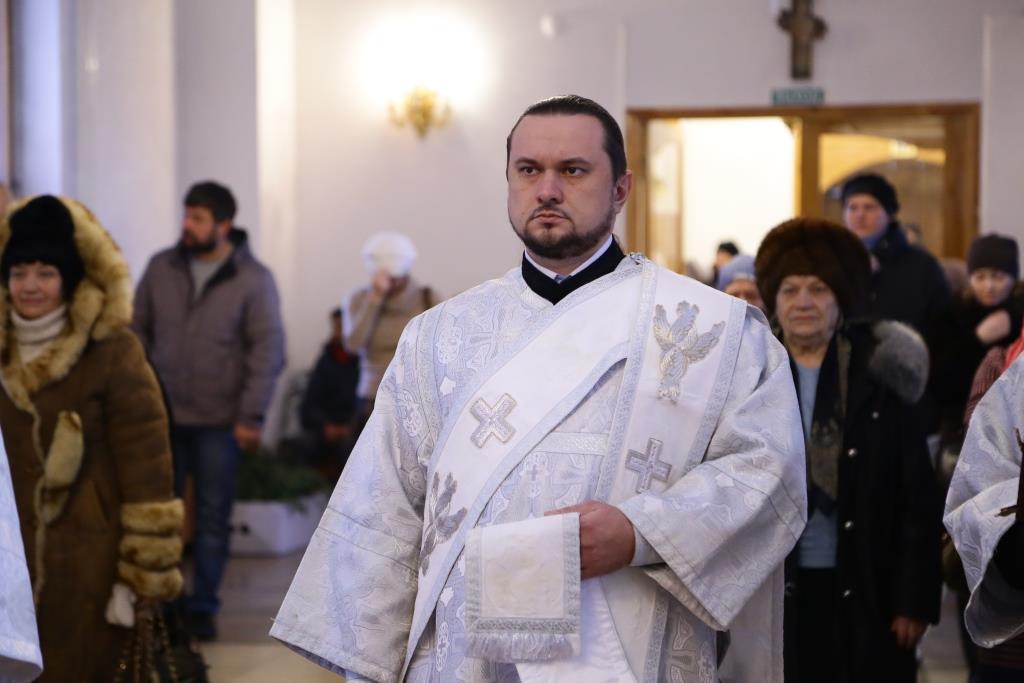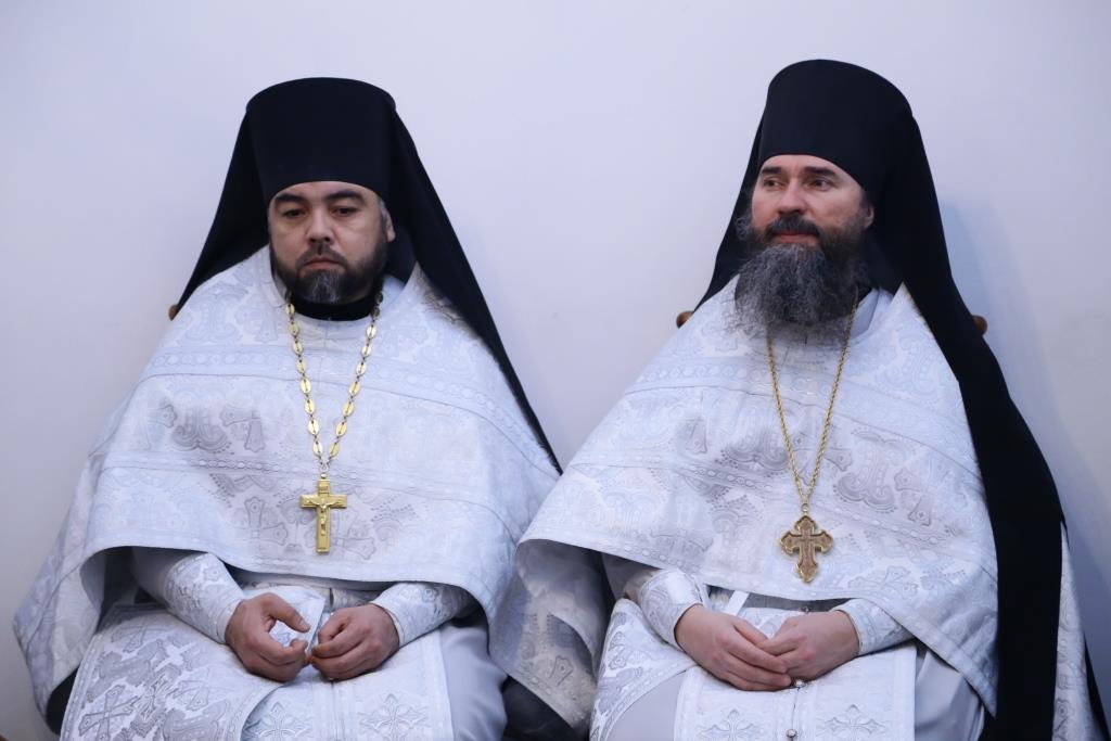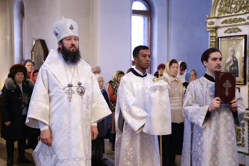 Его Преосвященству сослужили: духовник Свято-Троицкого Усть-Каменогорского мужского монастыря архимандрит Спиридон (Теплухин), ключарь Андреевского собора иеромонах Никодим (Авдеев), духовенство собора.