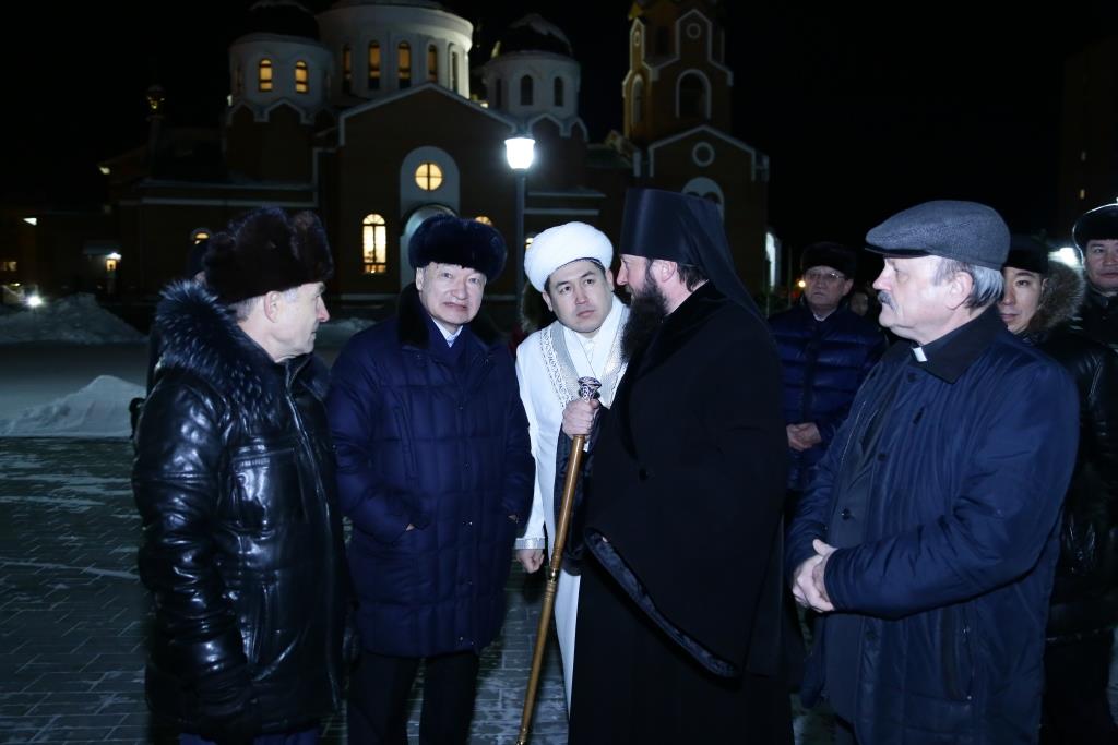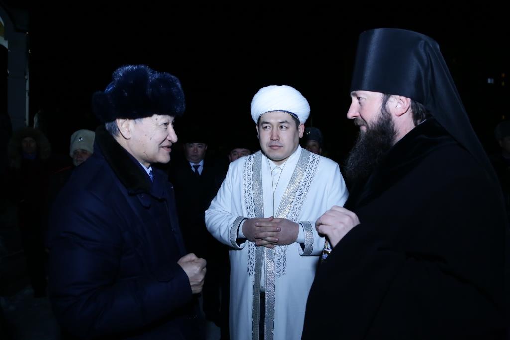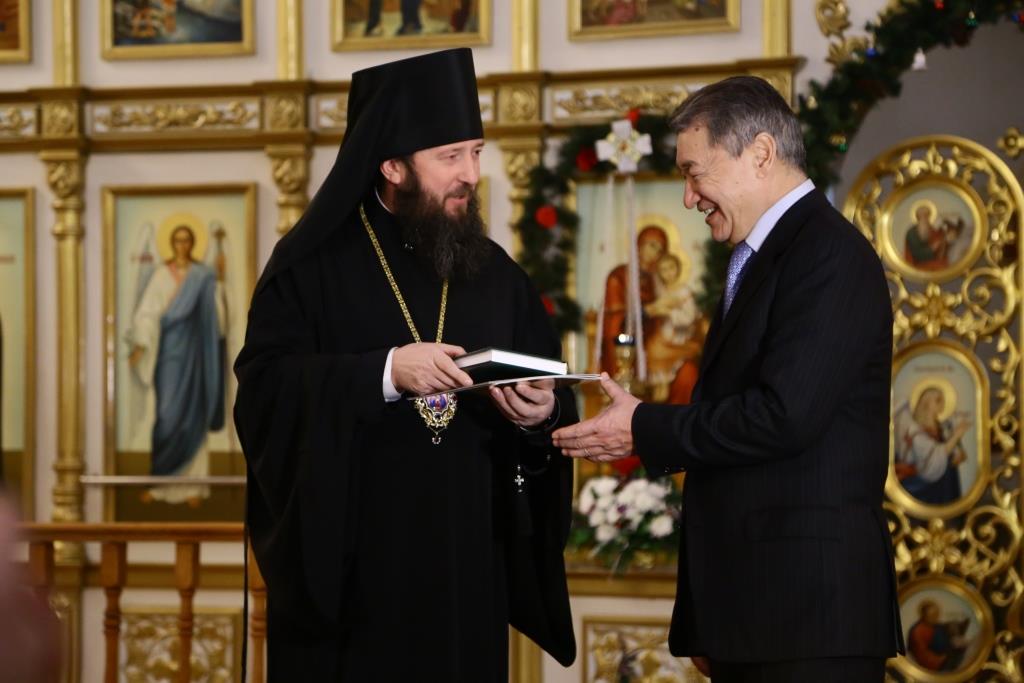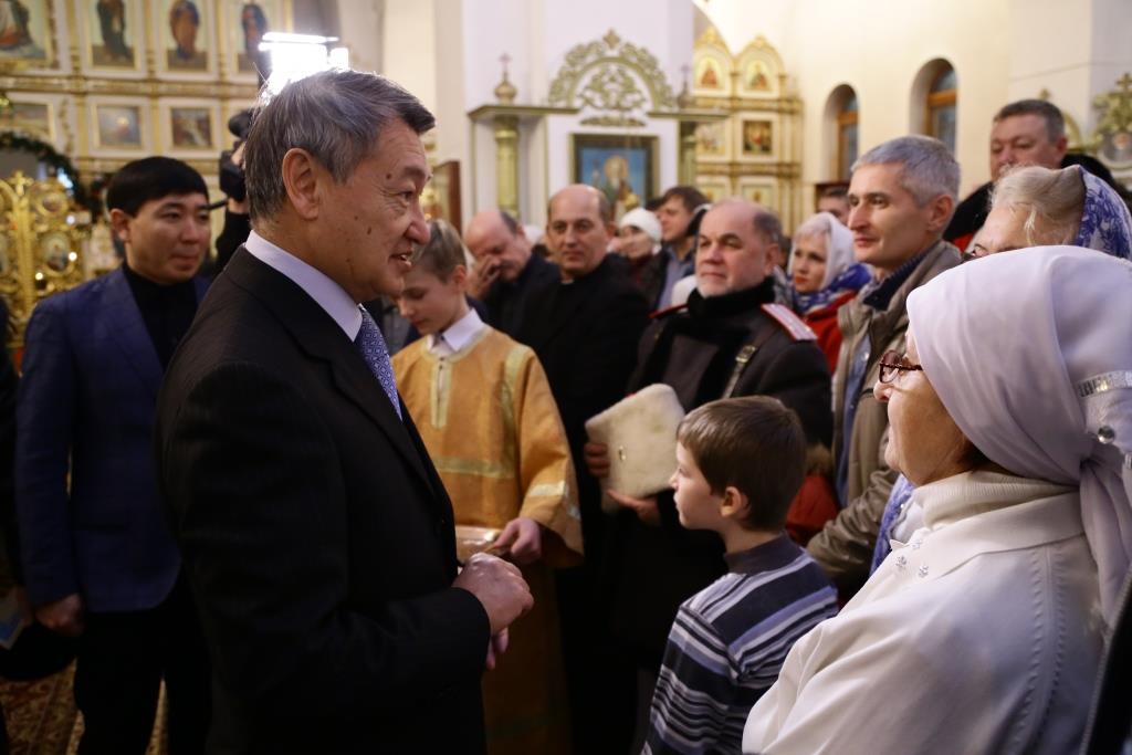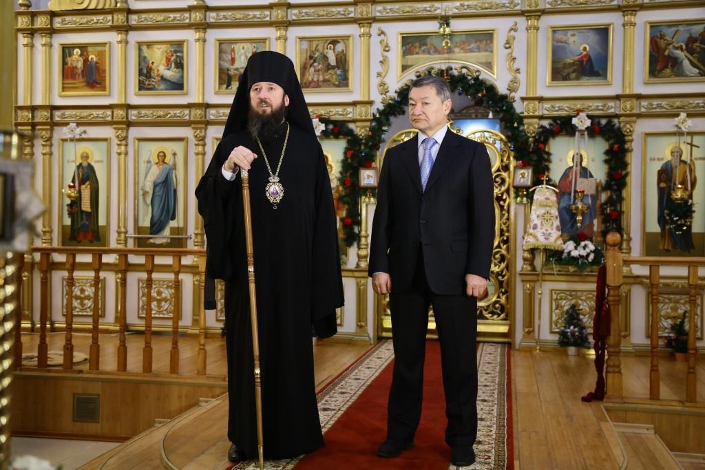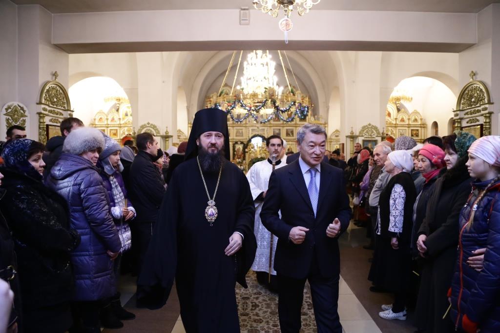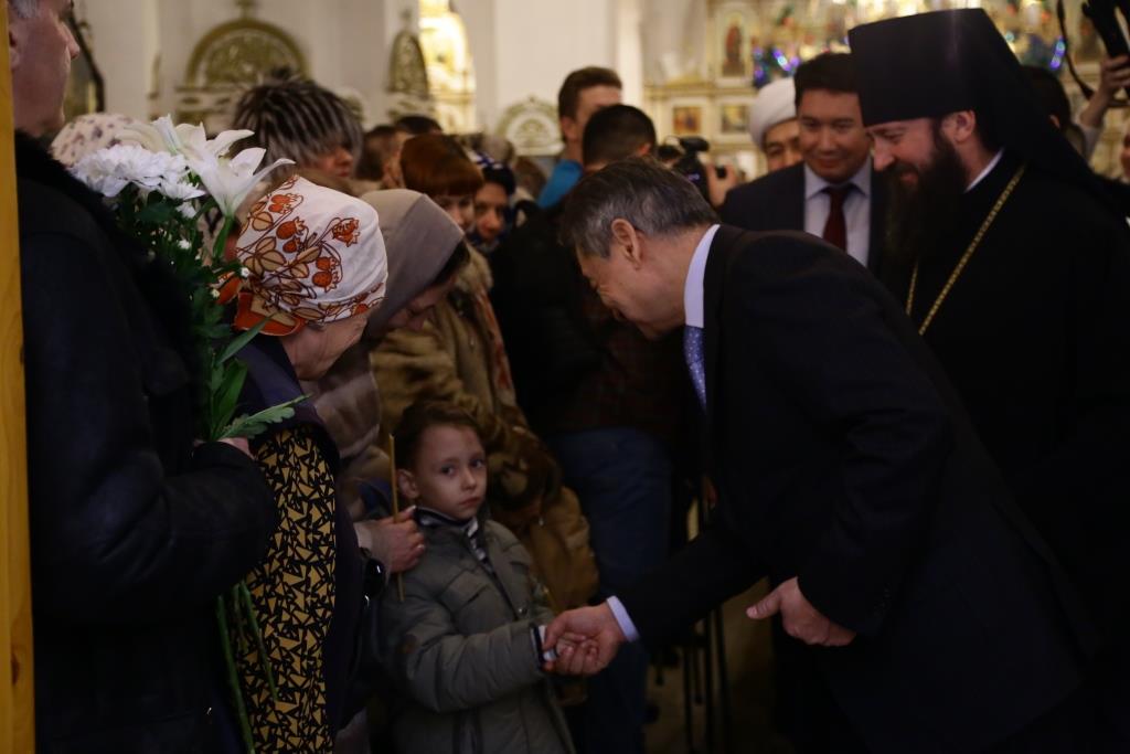 В 23:10, перед ночной Божественной Литургией, главный храм Рудного Алтая посетил аким Восточно-Казахстанской области Д.К. Ахметов. Высокого гостя встречал епископ Амфилохий и клирики собора. Даниал Кенжетаевич посетил возрождённый Свято-Троицкий крепостной храм, после чего в Андреевском соборе поздравил Владыку Амфилохия и всех православных христиан с великим праздником Рождества Христова. В ответном слове Управляющий Усть-Каменогорской епархией поблагодарил гостей за теплые поздравления и вручил господину Ахметову и сопровождавшим его лицам памятные подарки и Рождественские послания Святейшего Патриарха Московского и всея Руси Кирилла и митрополита Астанайского и Казахстанского Александра.