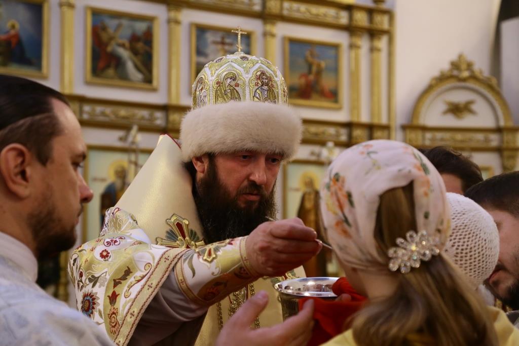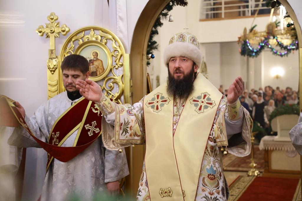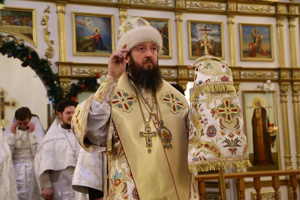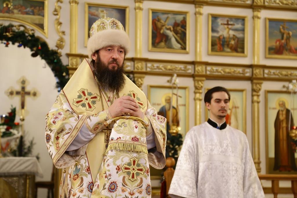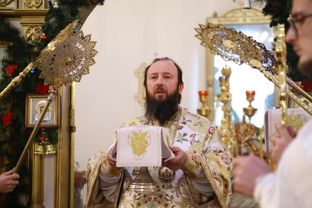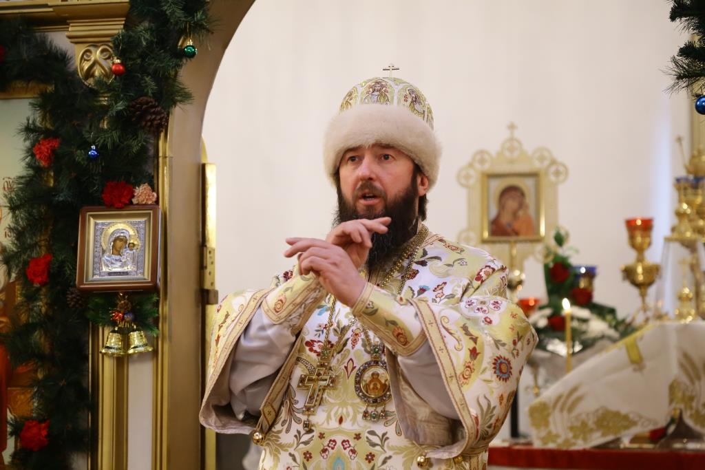 Литургия завершилась славлением Богомладенцу Еммануилу, после чего Преосвященный владыка обратился к верующим с проповедью: