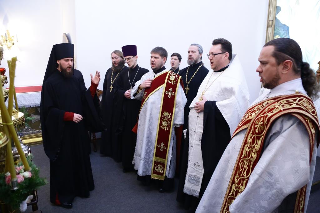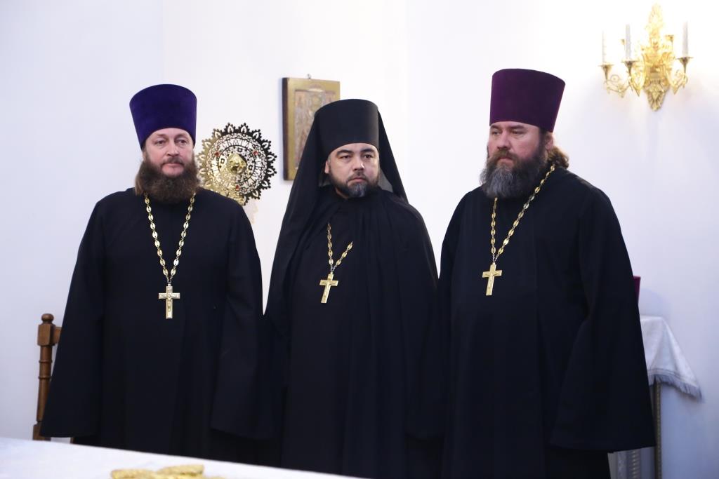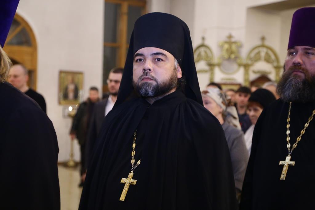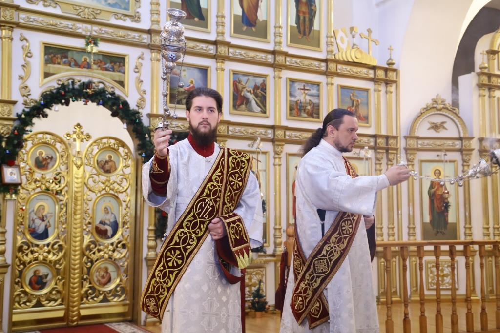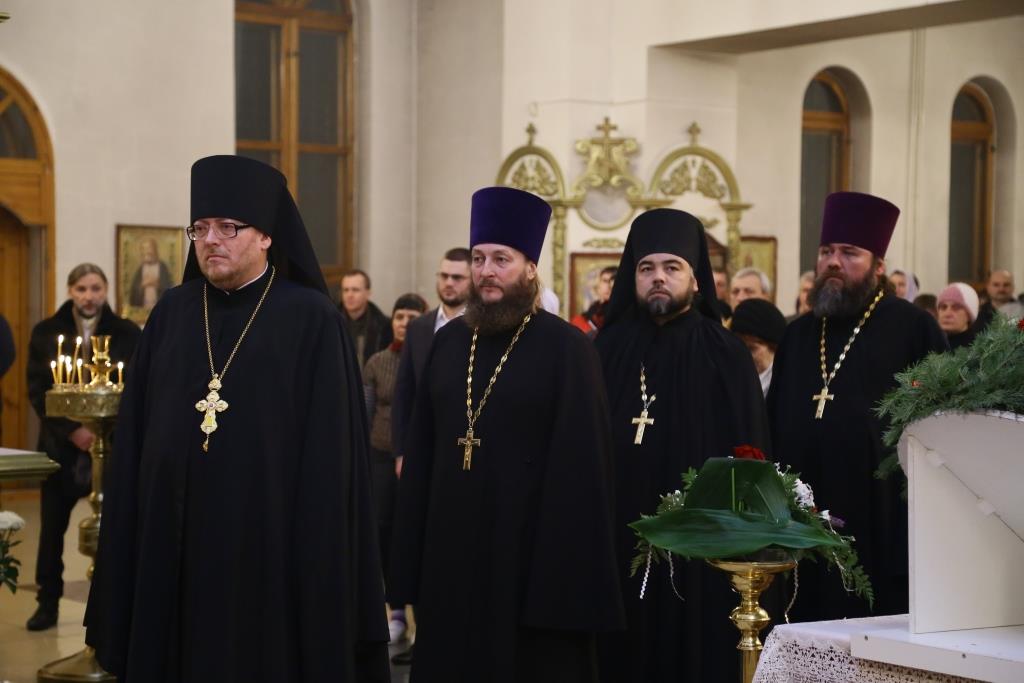 Его Преосвященству сослужили: благочинный Усть-Каменогорского церковного округа иерей Алексий Анищенко, и.о. секретаря епархии иерей Евгений Яганов, настоятели и духовенство храмов столицы Прииртышья, руководители епархиальных отделов в священном сане.
