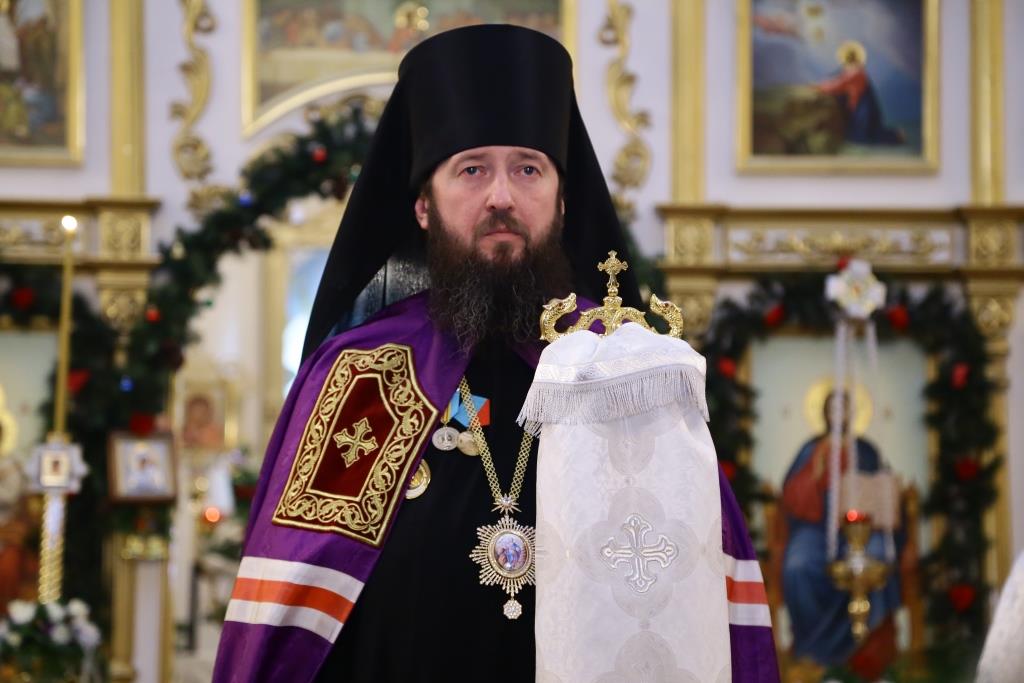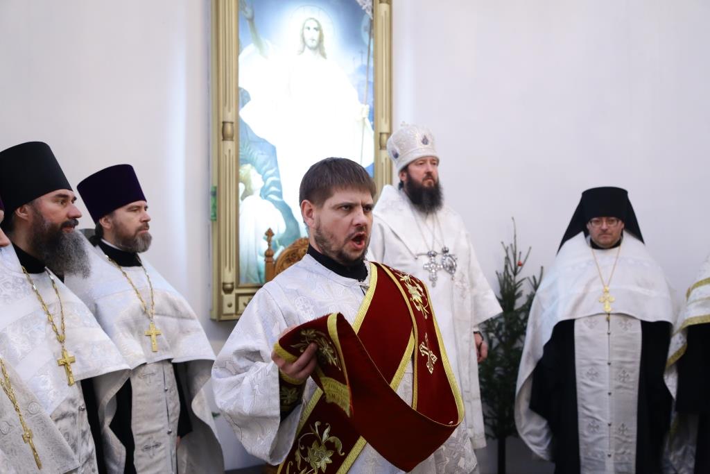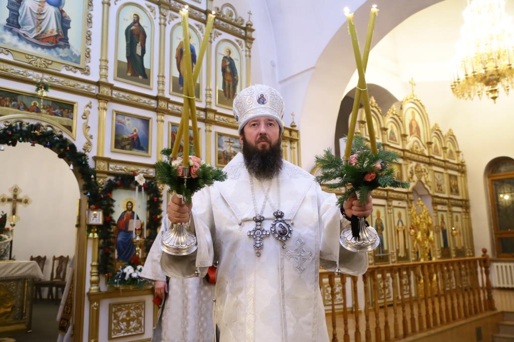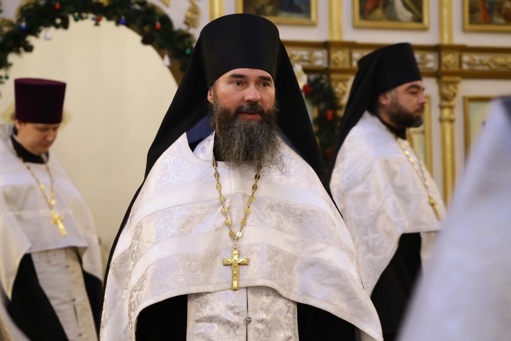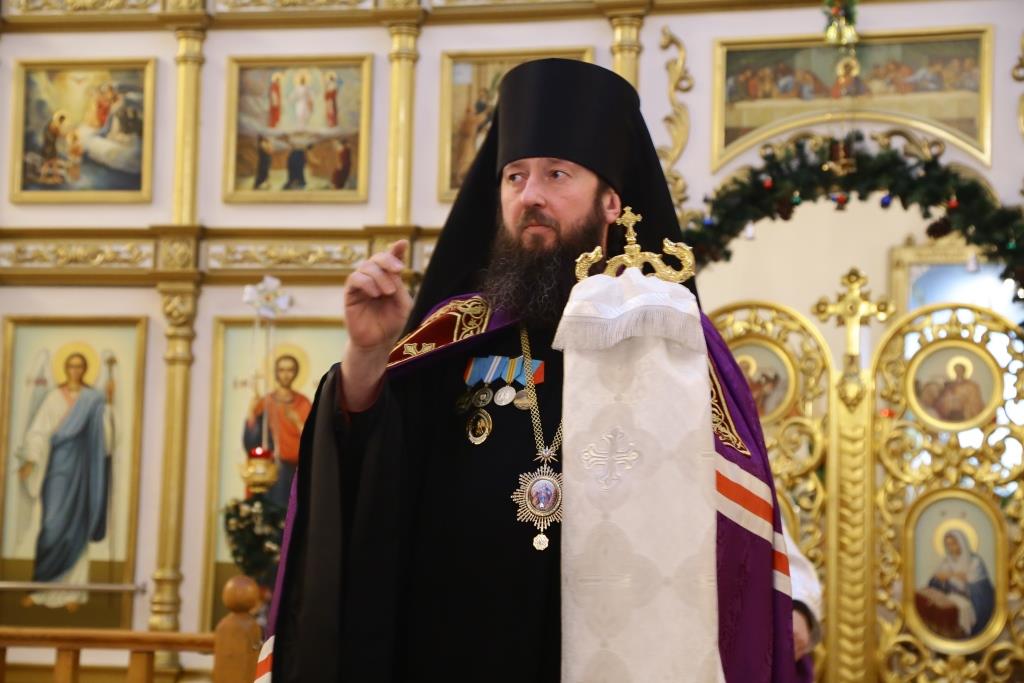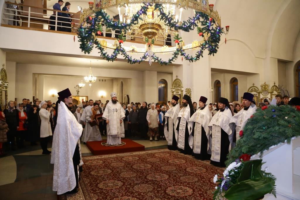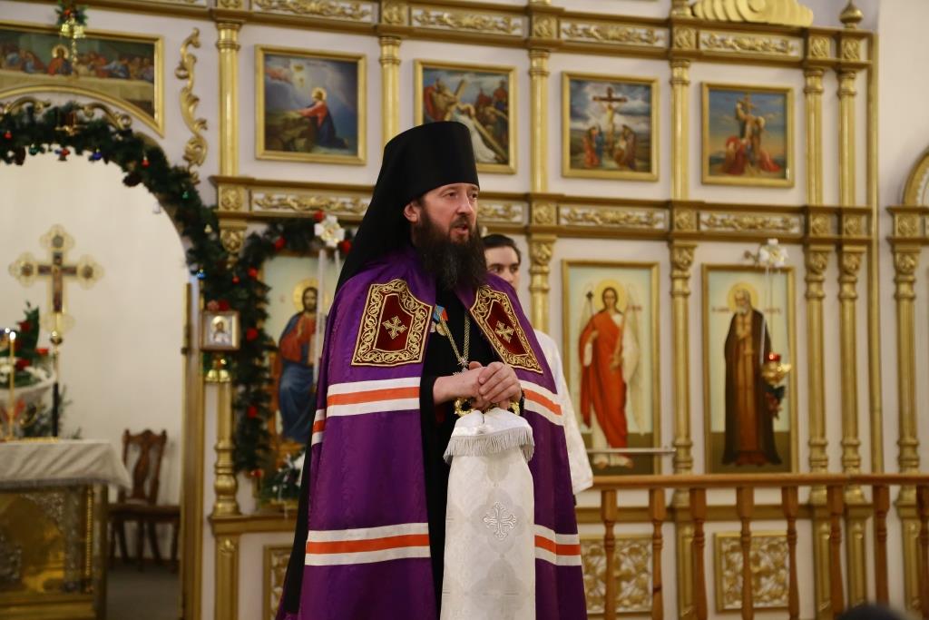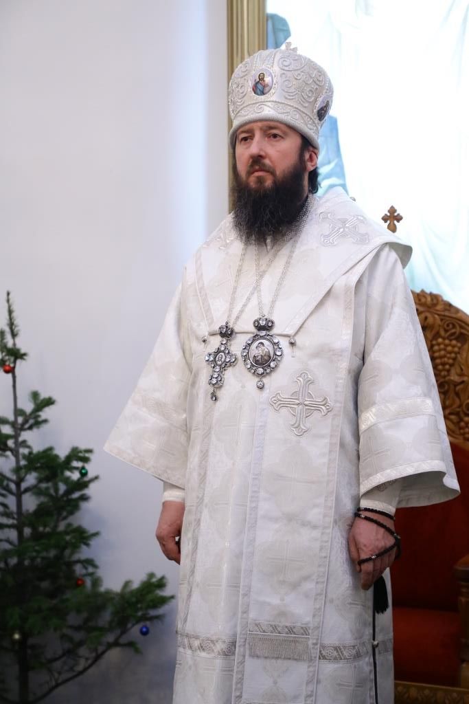 По окончании богослужения благочинный Усть-Каменогорского церковного округа иерей Алексий Анищенко огласил Рождественское послание епископа Амфилохия духовенству, монашествующим и боголюбивой пастве епархии, после чего от лица православных верующих Восточного Казахстана отец благочинный поздравил Преосвященного епископа Амфилохия с праздником Рождества Христова и преподнес архиерею букет цветов.